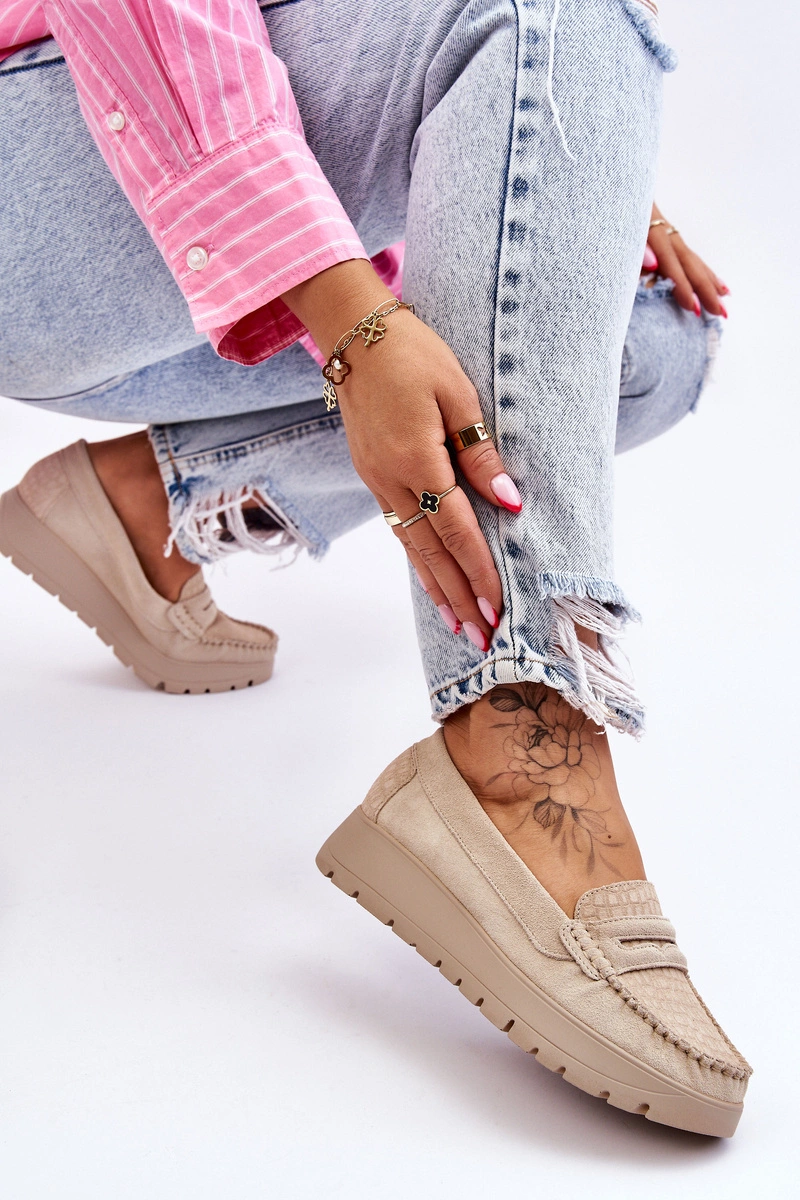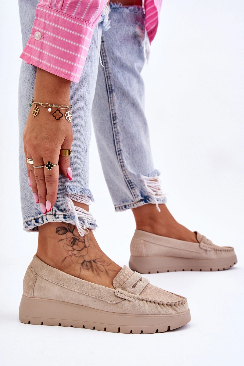 Zamszowe Mokasyny Na Platformie Jasnobeżowe Lemar Milana