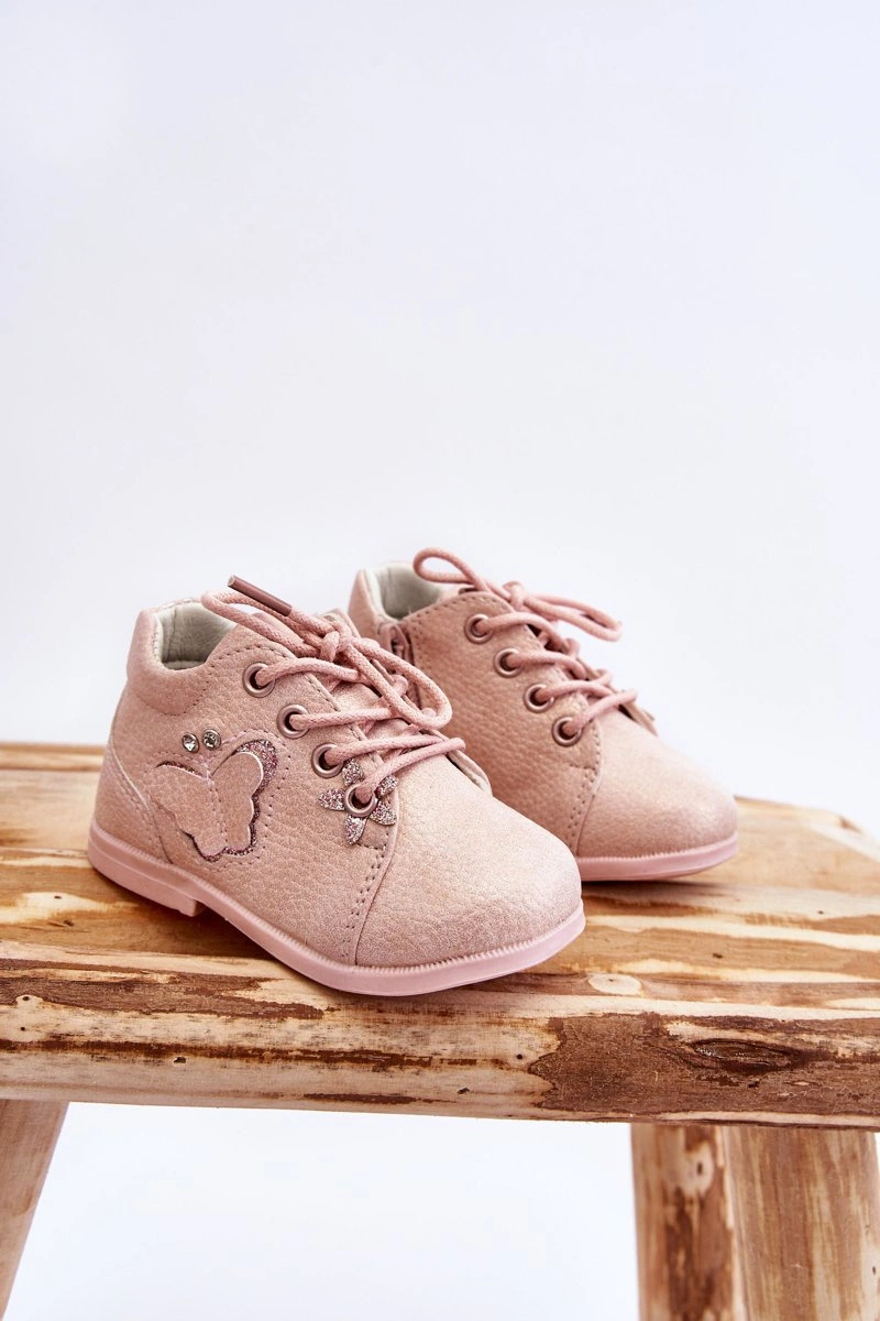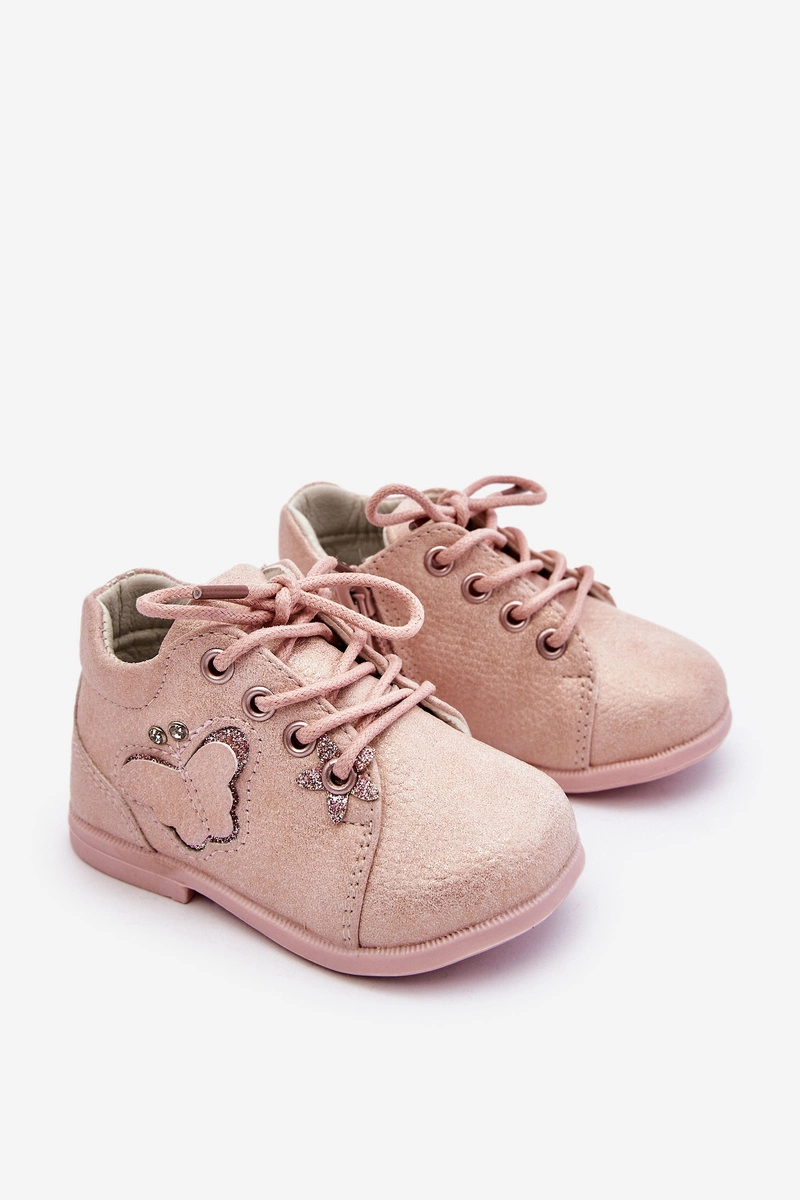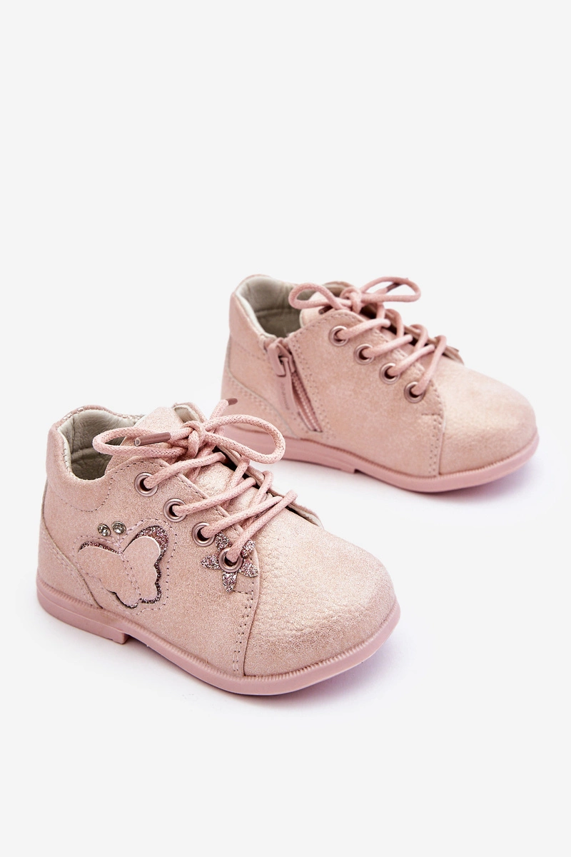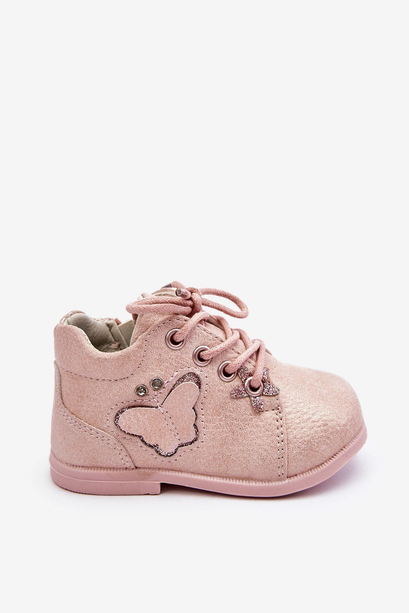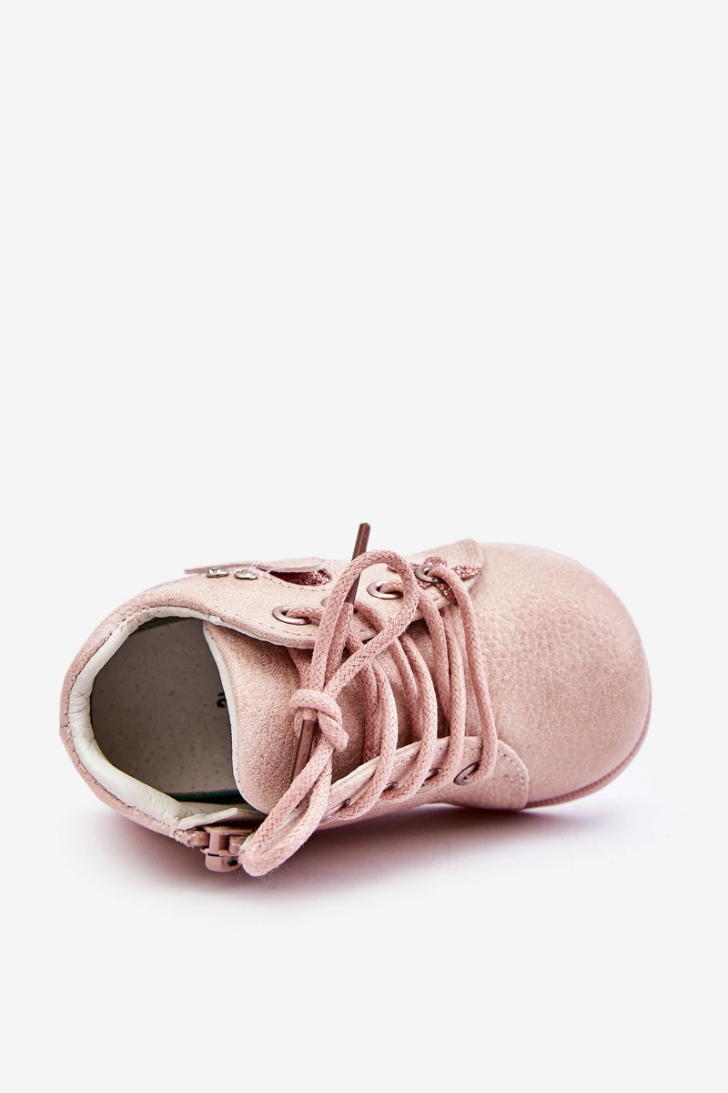 Skórzane Botki Sznurowane Z Motylkiem Różowe Avi
