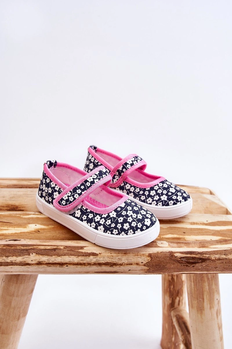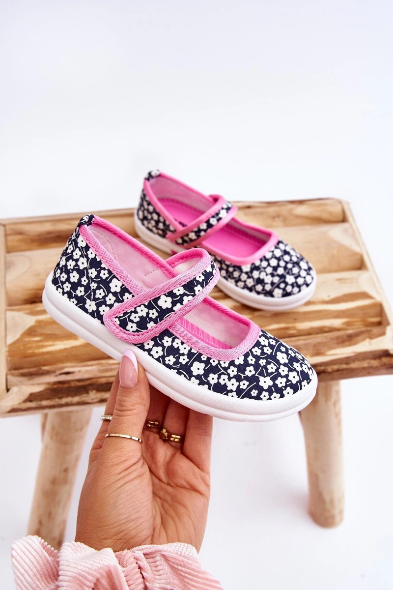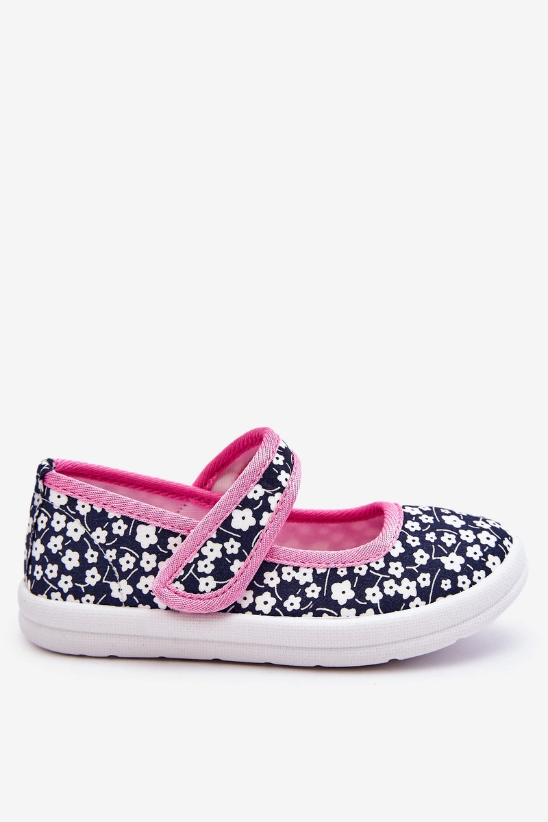 Dziecięce Baleriny Na Rzep W Print Granatowo-Różowe Selah