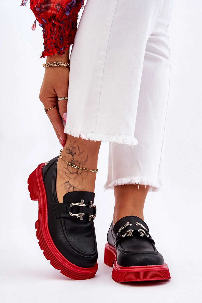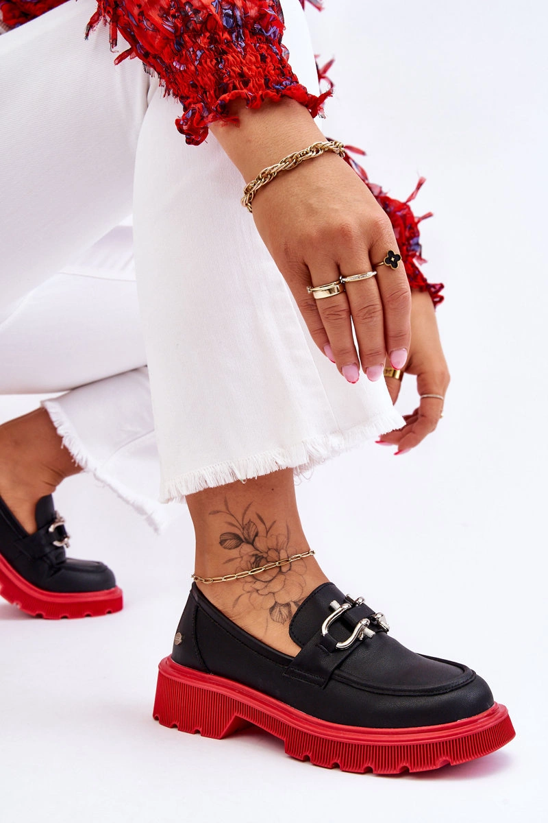 Skórzane Mokasyny Z Ozdobą GOE LL2N4040 Czarno-Czerwone