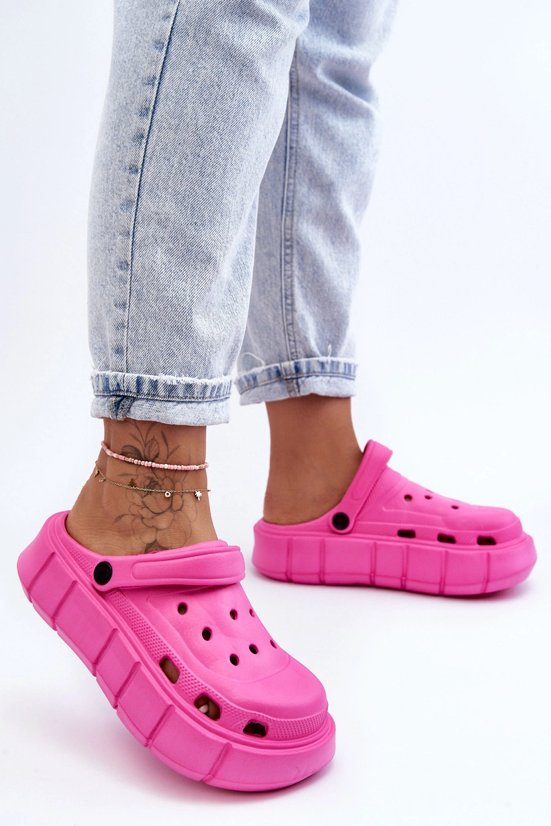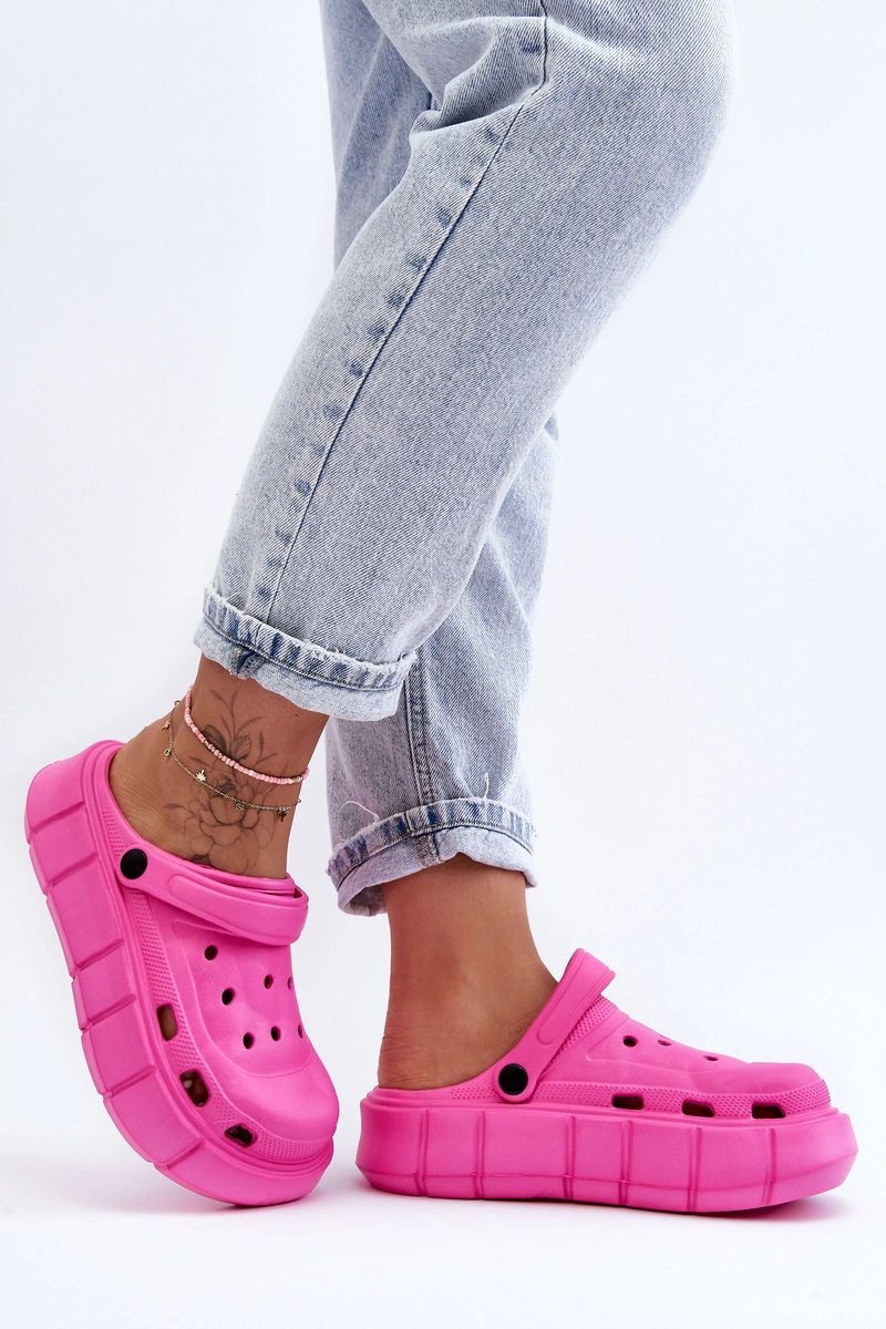 Damskie klapki wykonane zostały z piankowego tworzywa. Ruchomy paseczek zabezpiecza przed przesuwaniem się stopy. Buty zostały osadzone na masywnej platformie. Idealny model do pracy w ogrodzie czy użytkowania w domu zamiast papci. Otwory w cholewce pozwalają na odpowiednią wentylację obuwia, co świetnie sprawdza się podczas cieplejszych dni. Przy wyborze rozmiaru prosimy sugerować się tabelą rozmiarów.