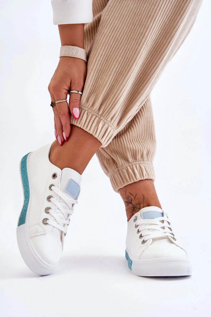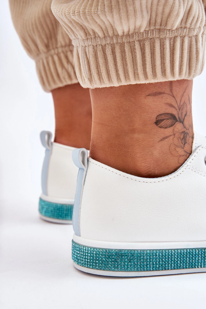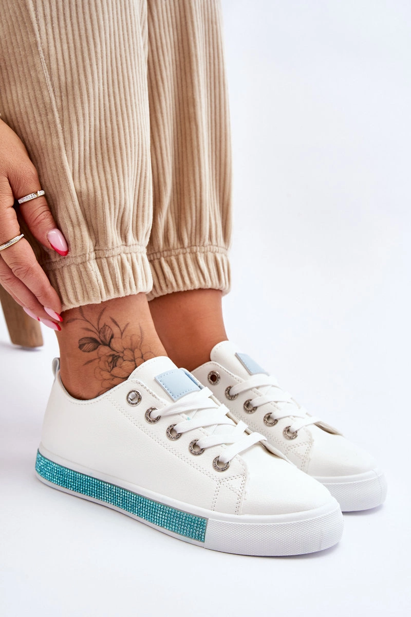 Niskie Trampki Damskie Z Dżetami Biało-Niebieskie Demira