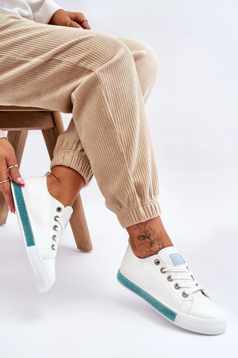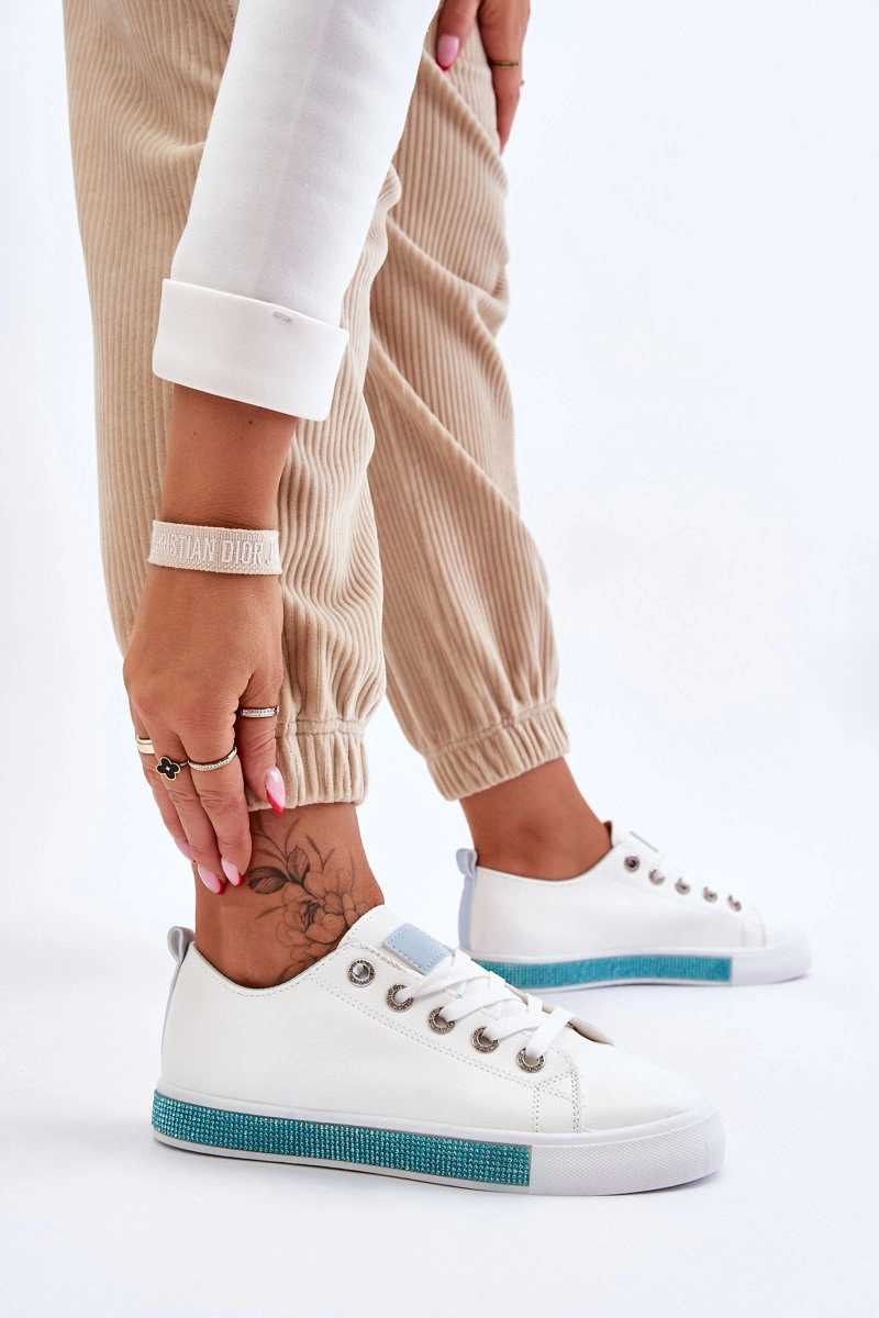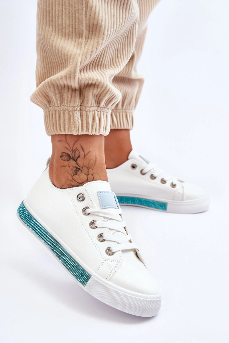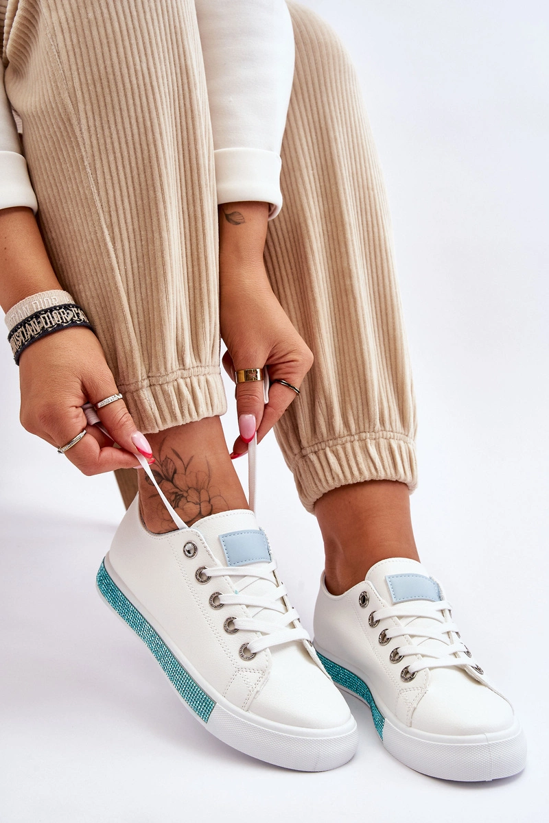 Niskie Trampki Damskie Z Dżetami Biało-Niebieskie Demira