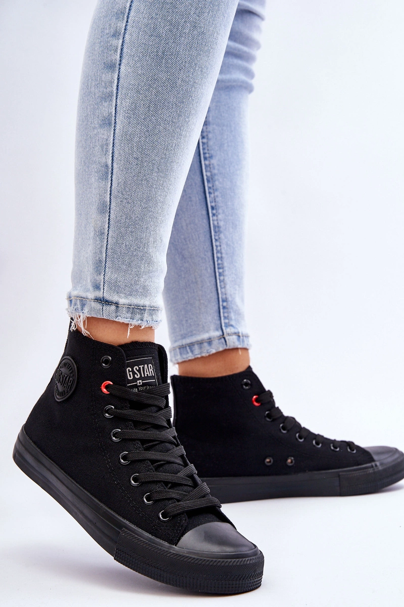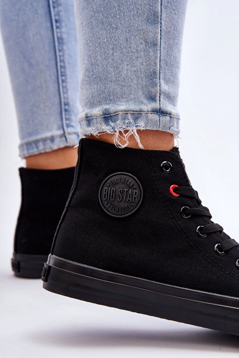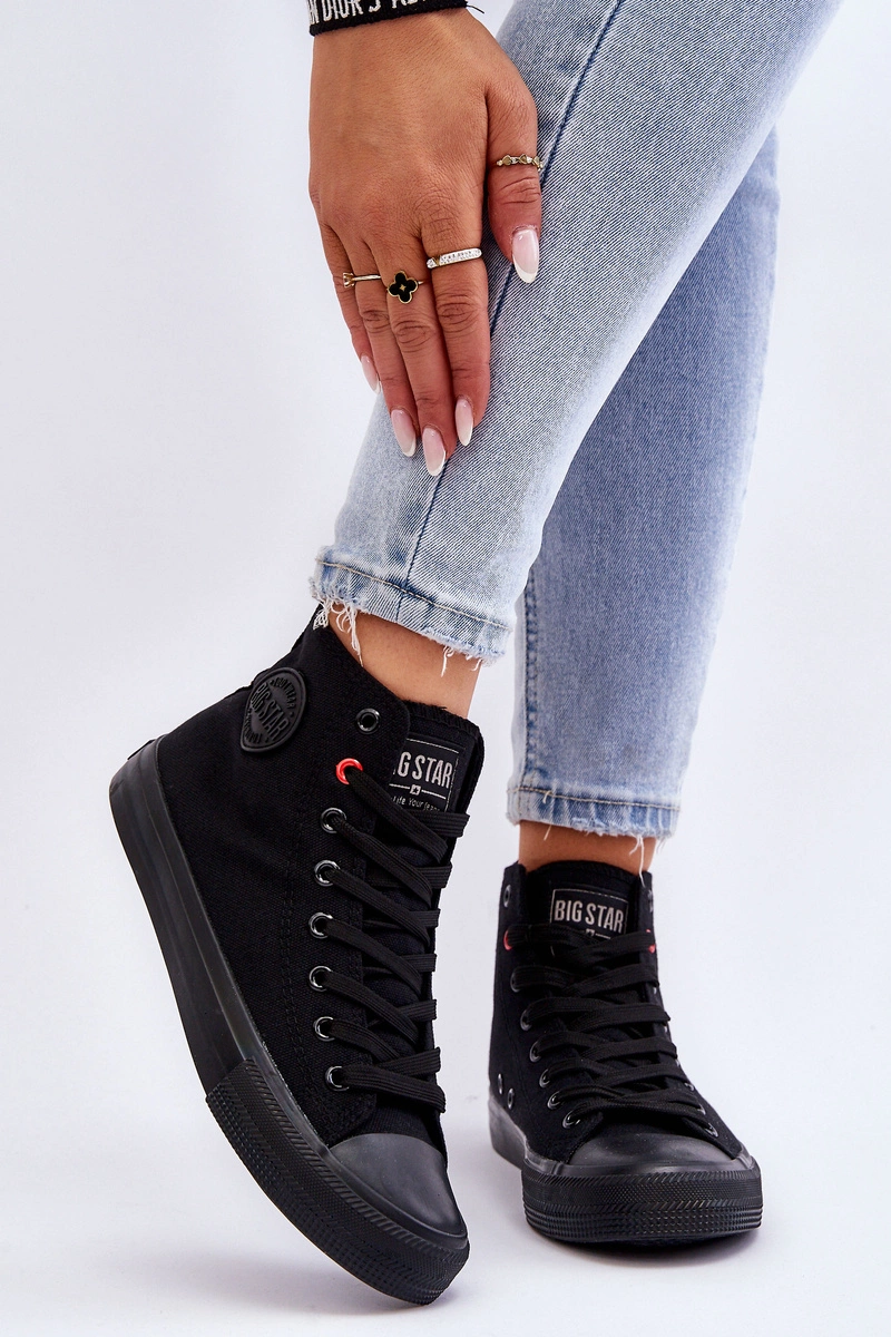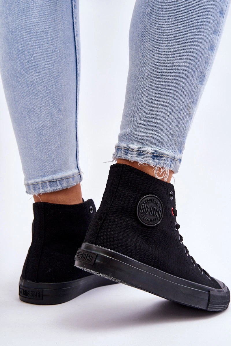 Damskie Klasyczne Wysokie Trampki Big Star T274033 Czarne