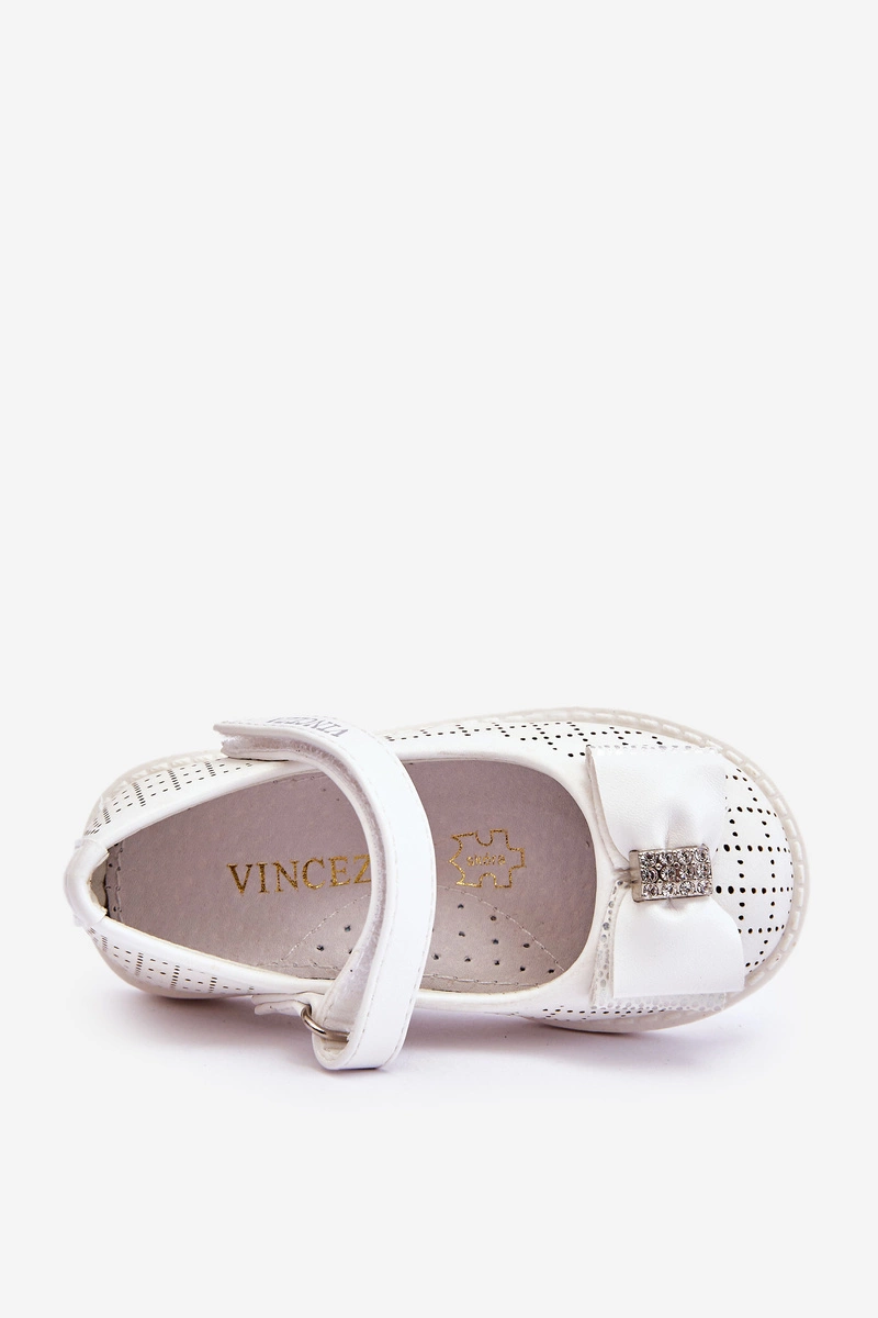 Dziecięce Balerinki Z Kokardą Na Rzep Białe Halle