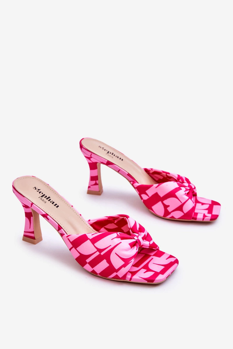 Modne Klapki Na Obcasie W Print Różowe Floria