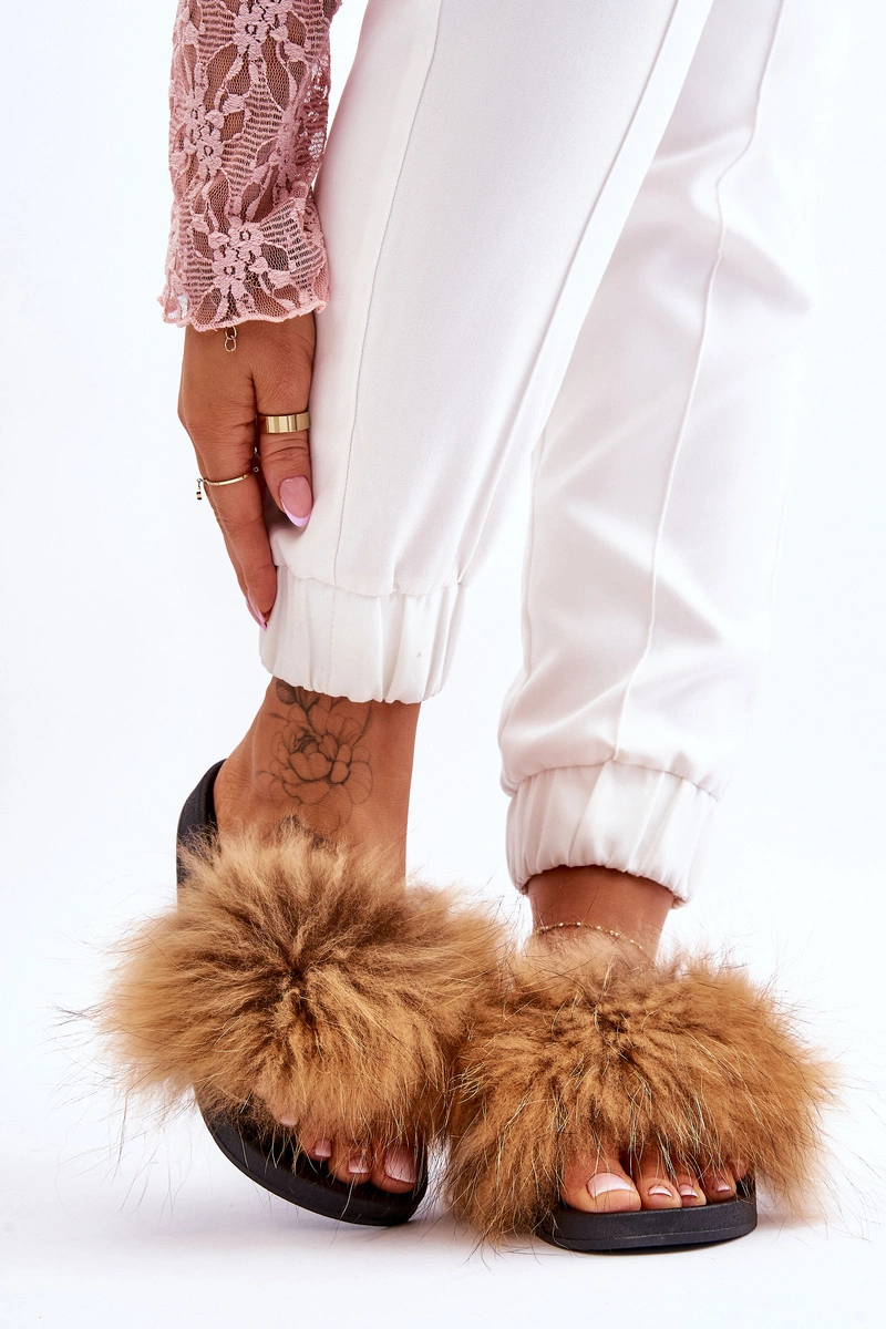 Damskie Gumowe Klapki Z Futerkiem Brązowe Lucrece