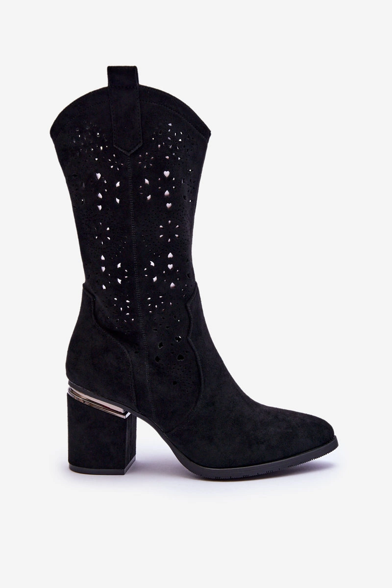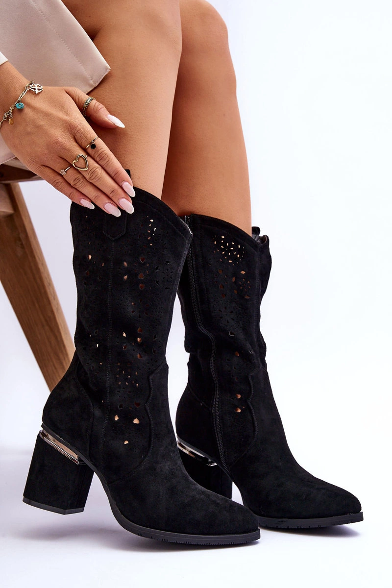 Cudowny model damskich kozaków został ozdobiony ażurowym wzorem. Cholewka wykonana z miłego w dotyku eko zamszu. Zapiętek w tych butach jest usztywniany. Kozaki posiadają obcas w postaci słupka. Wkładka została wykonana z eko skóry. Kozaki posiadają z boku cholewki suwak. Przy wyborze rozmiaru prosimy sugerować się tabelą rozmiarów.