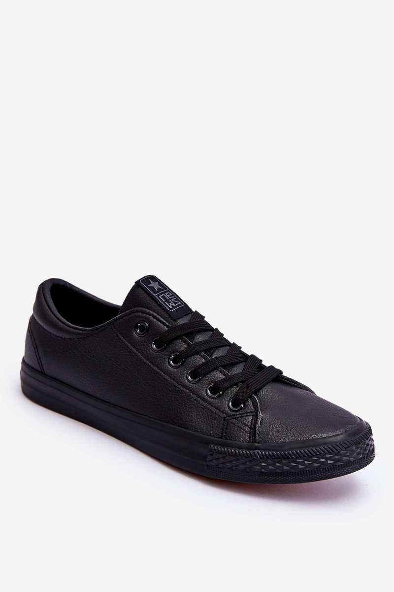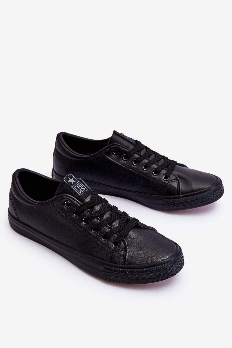 Męskie Skórzane Wiązane Klasyczne Trampki Czarne Hank