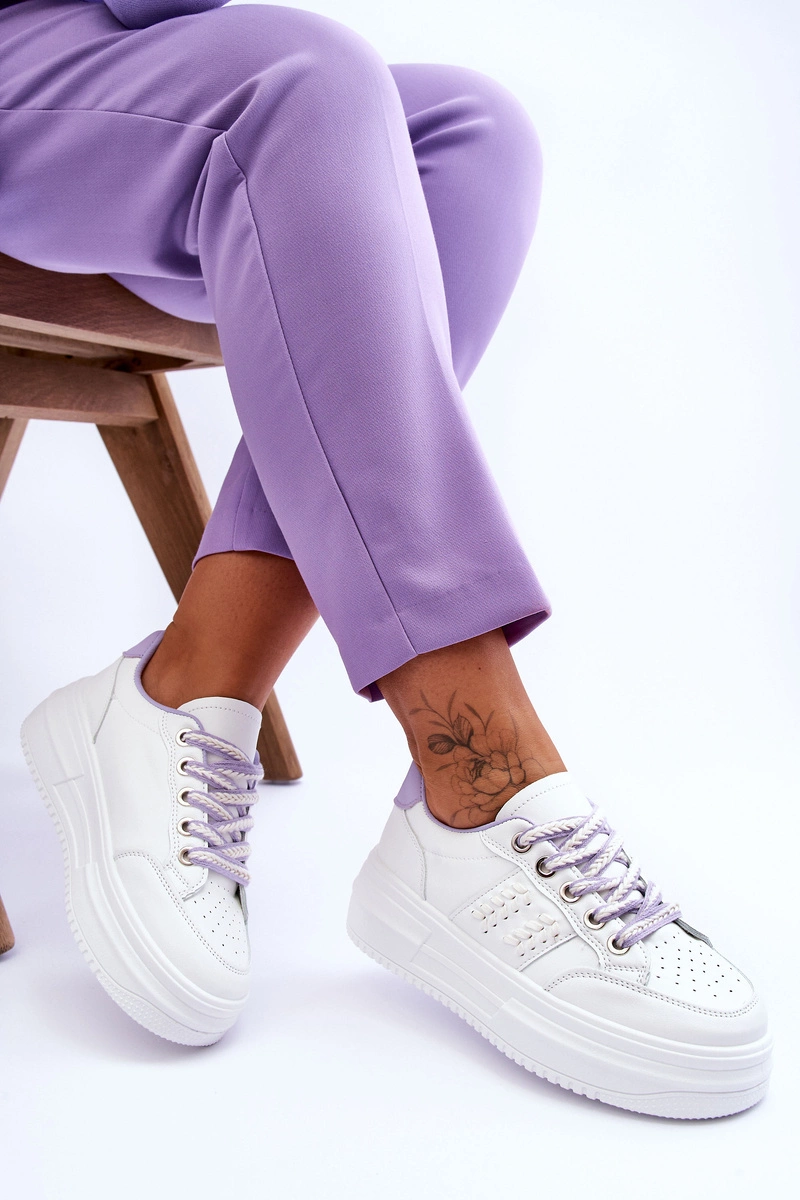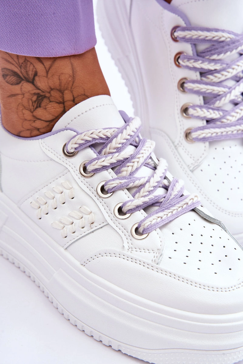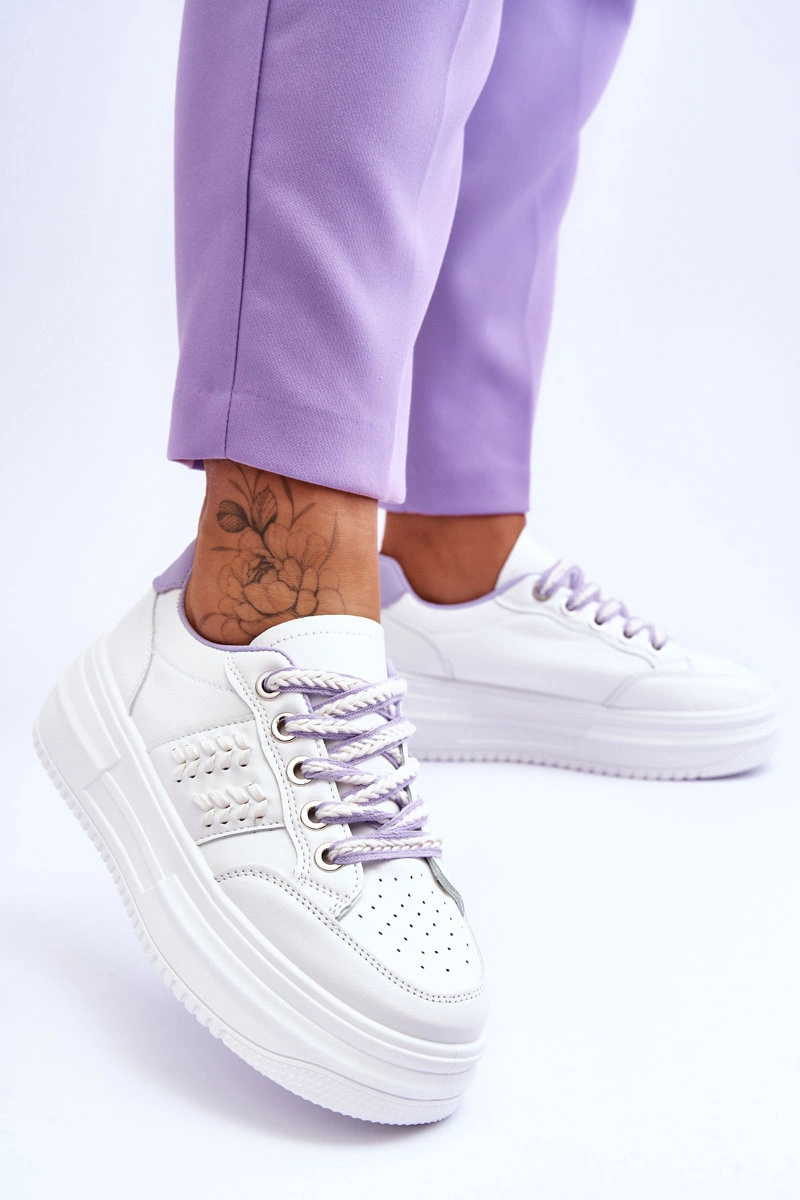 Modne Damskie Sneakersy Na Platformie Biało-Fioletowe Claribel