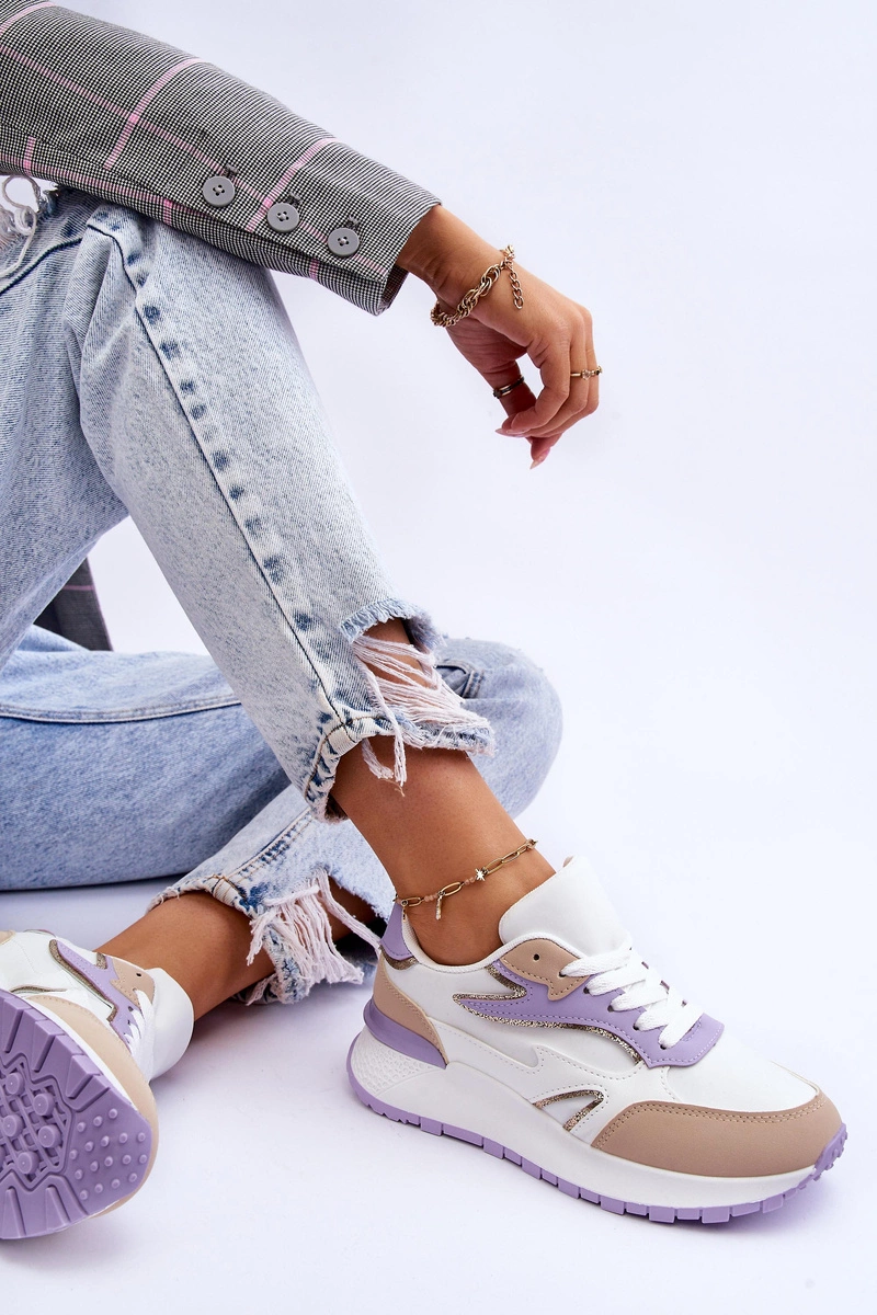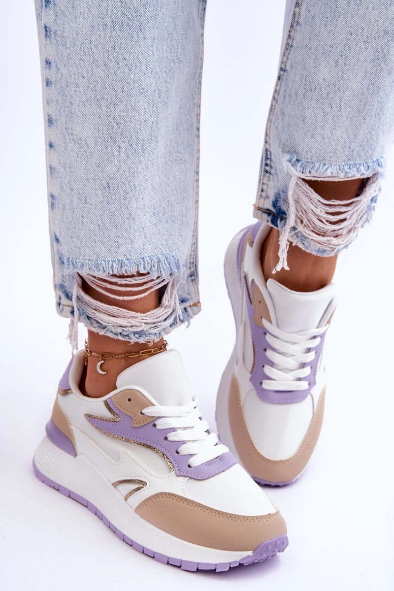 Damskie Buty Sportowe Na Platformie Biało-Fioletowe Henley