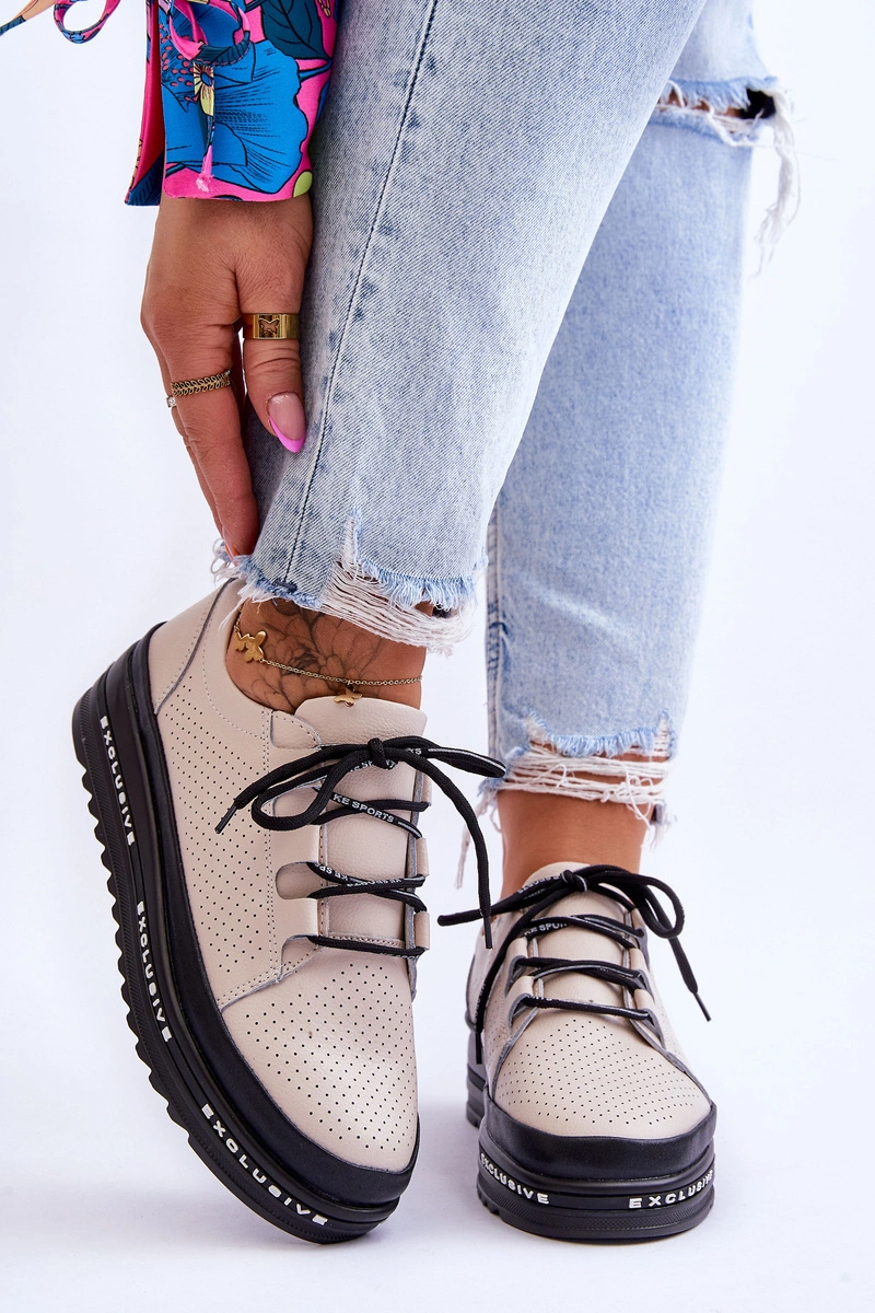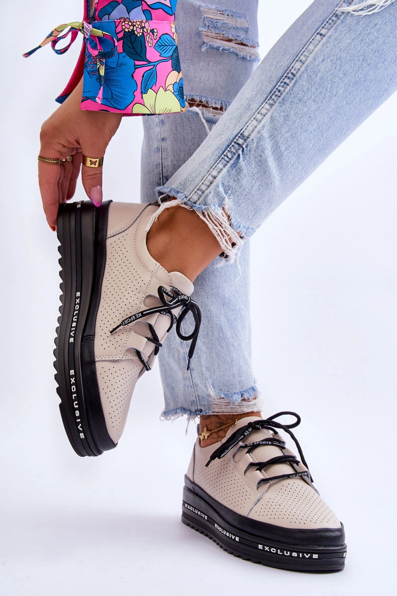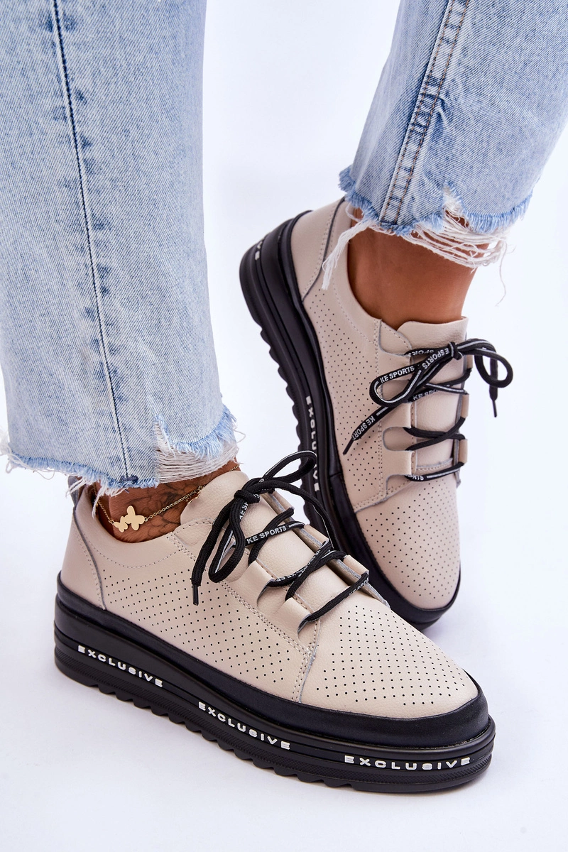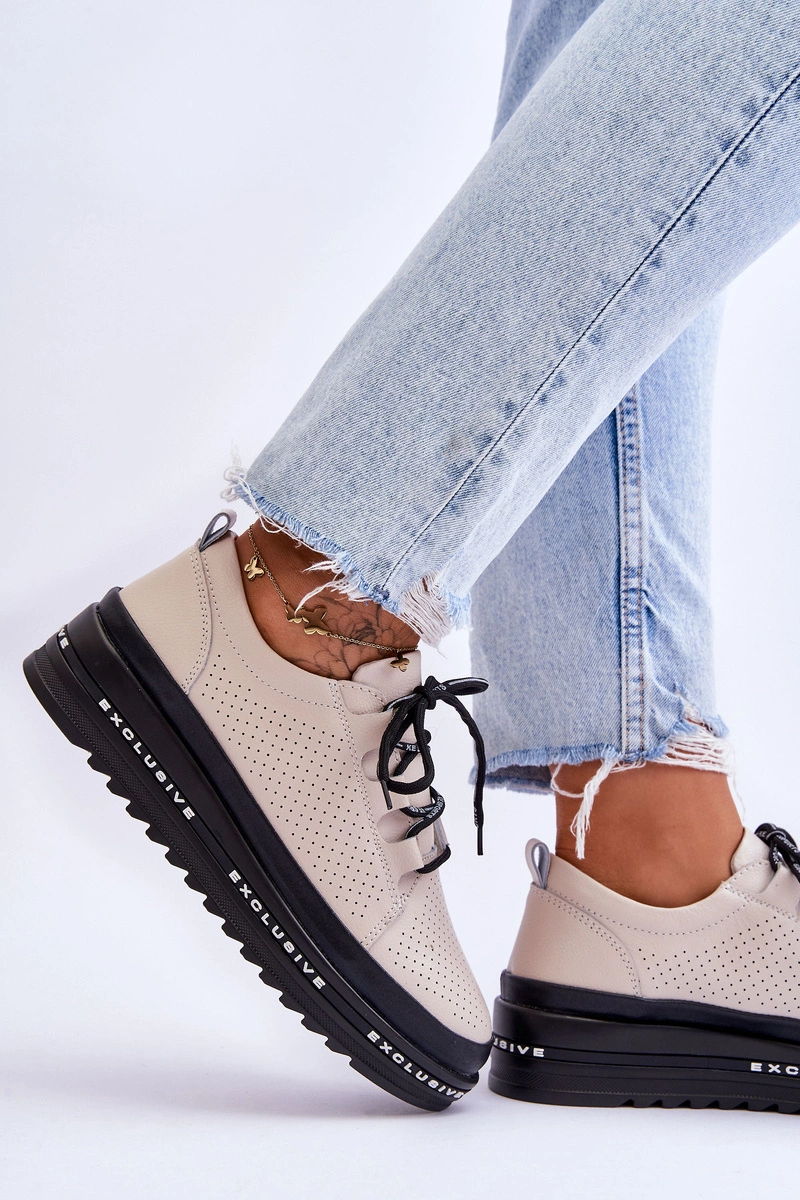 Skórzane Ażurowe Buty Sportowe Beżowe Leonor