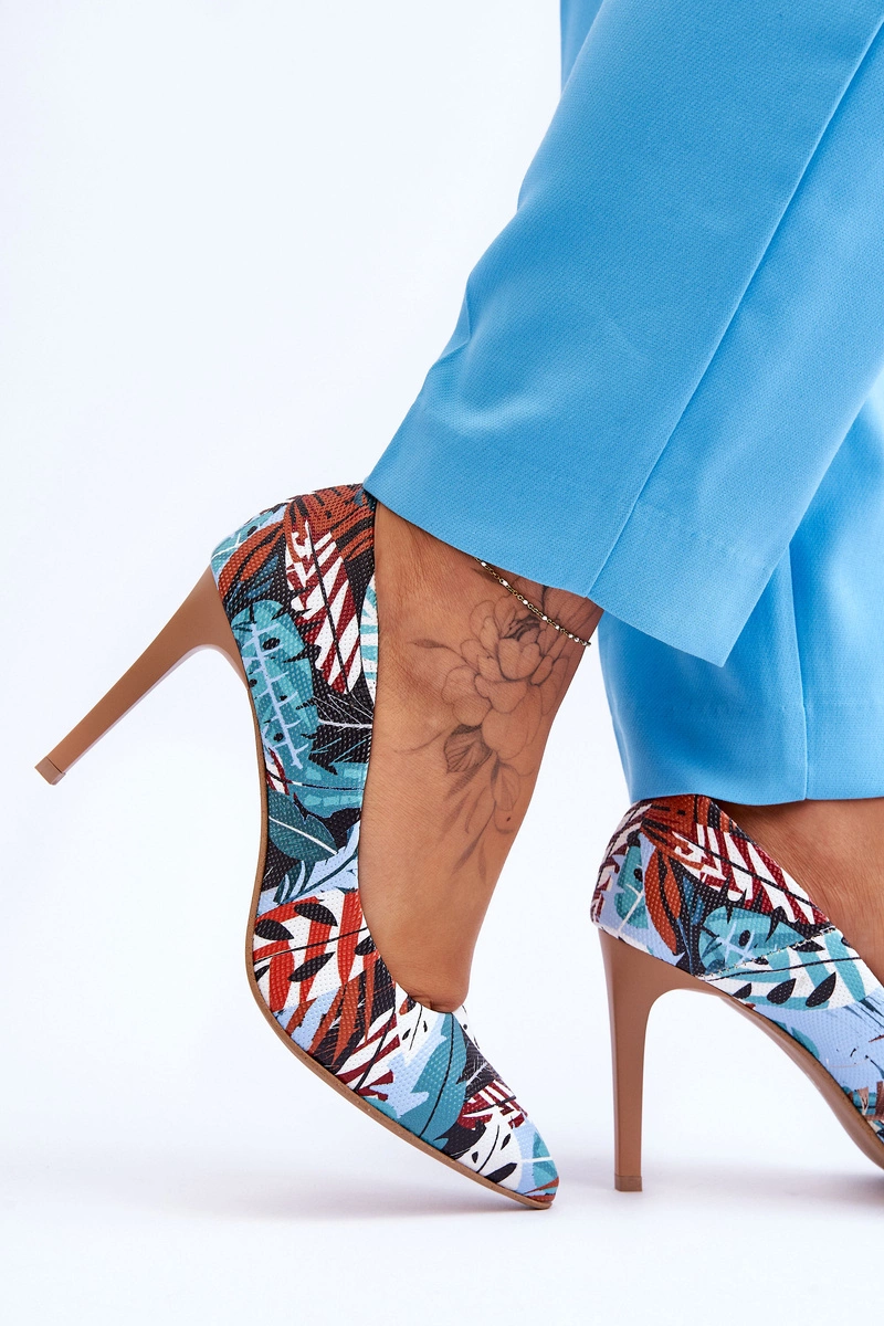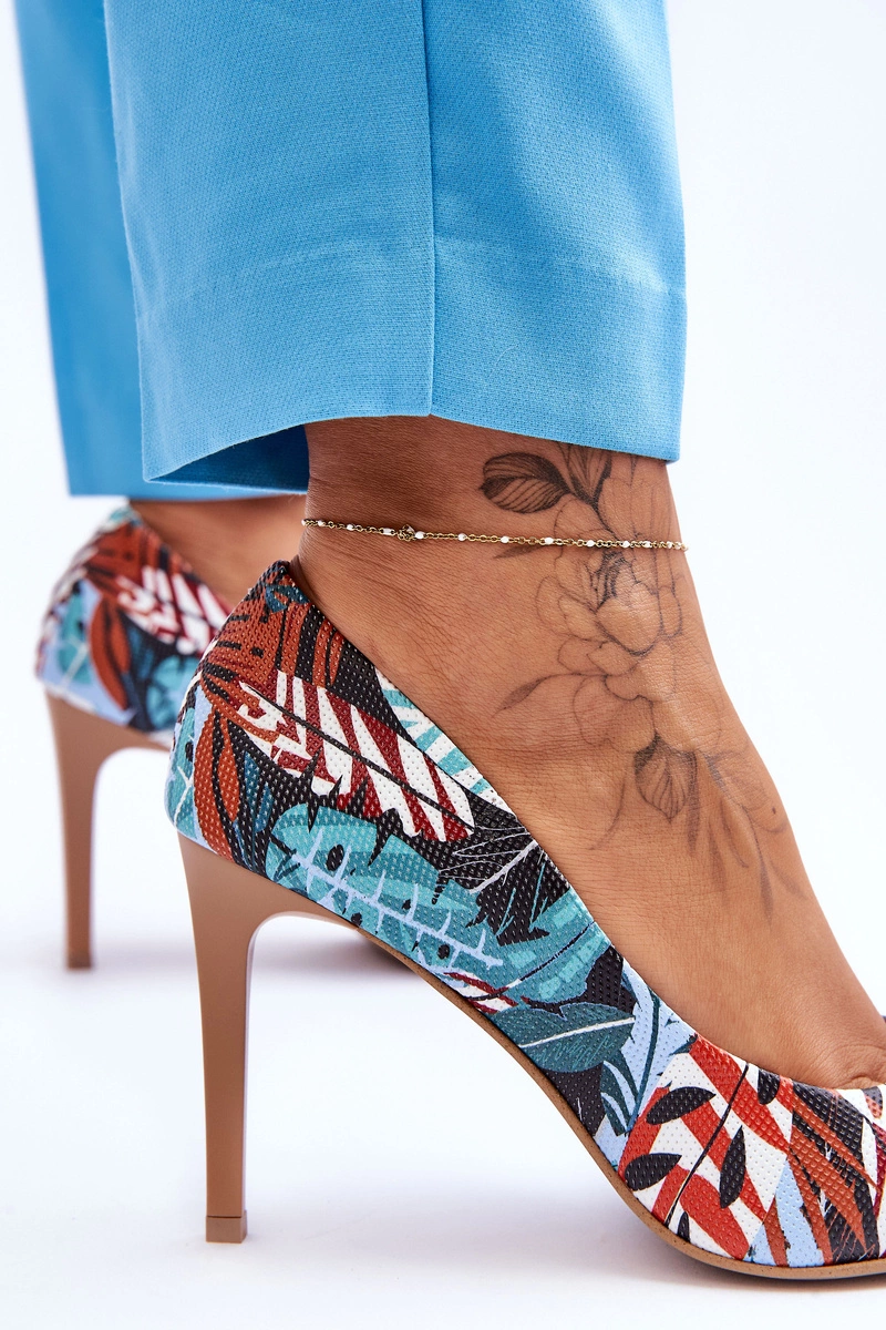 Modne Skórzane Szpilki Lewski Shoes 2659 Zielono-Niebieskie
