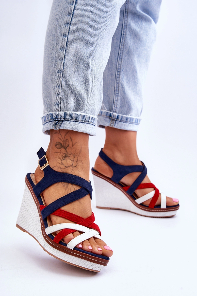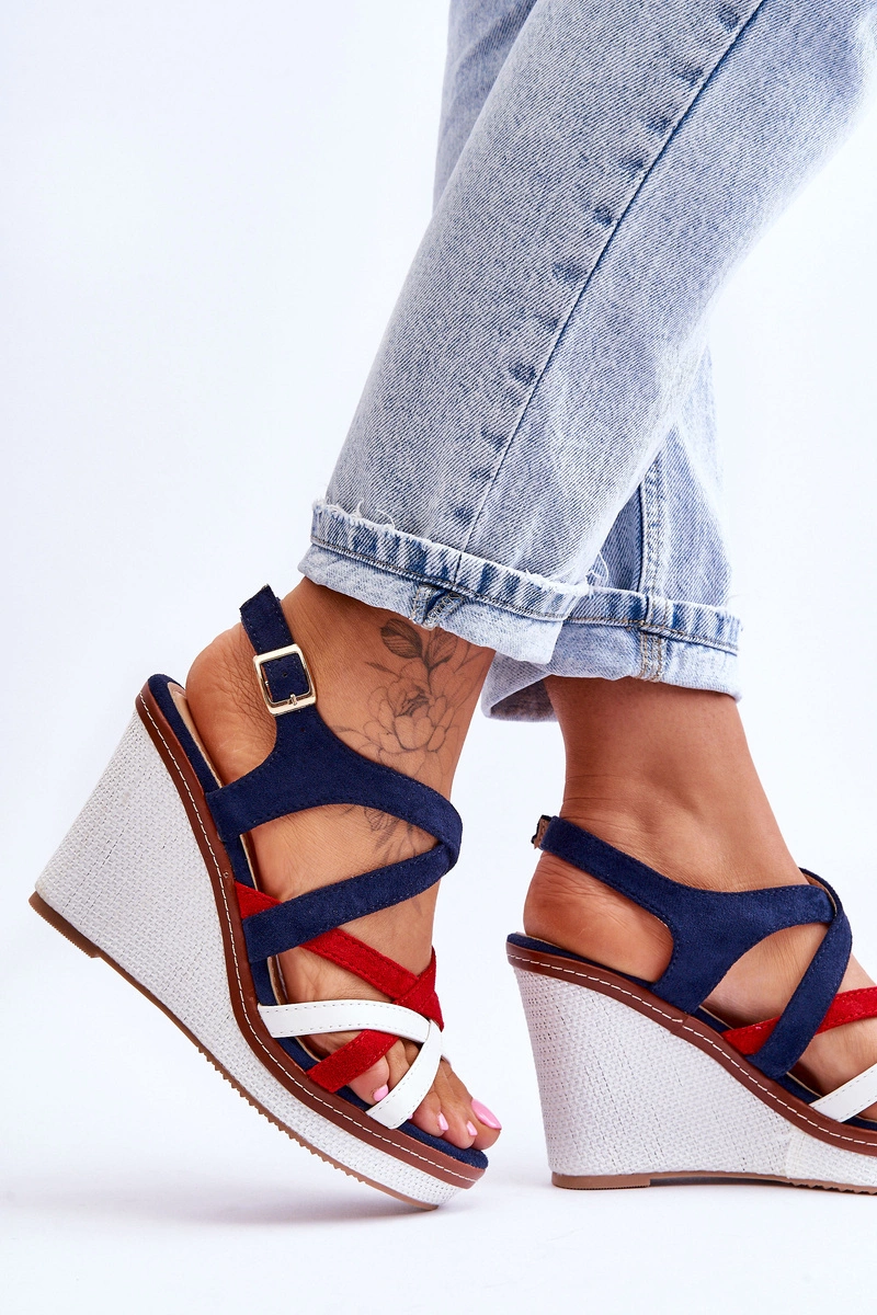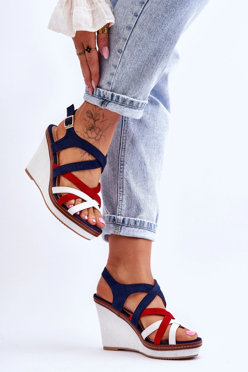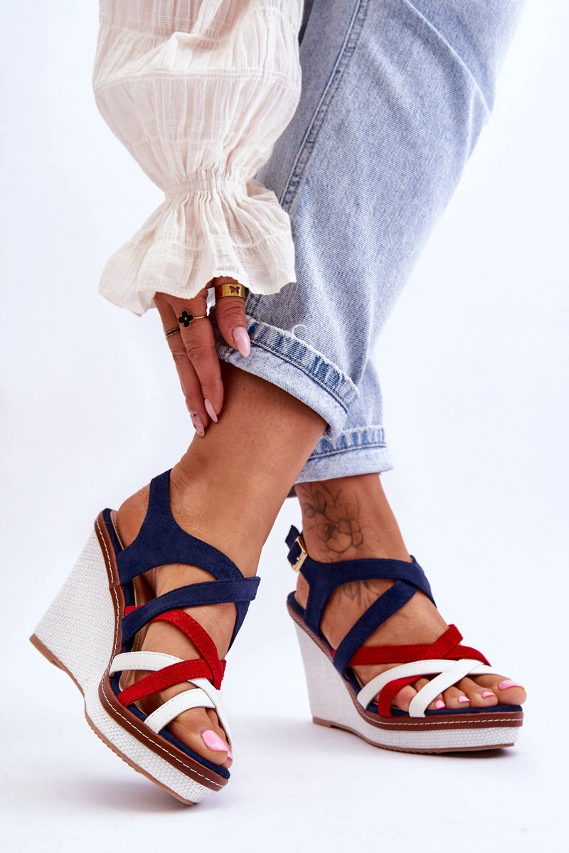Sandały Na Koturnie Z Paseczkami Granatowe Ellen