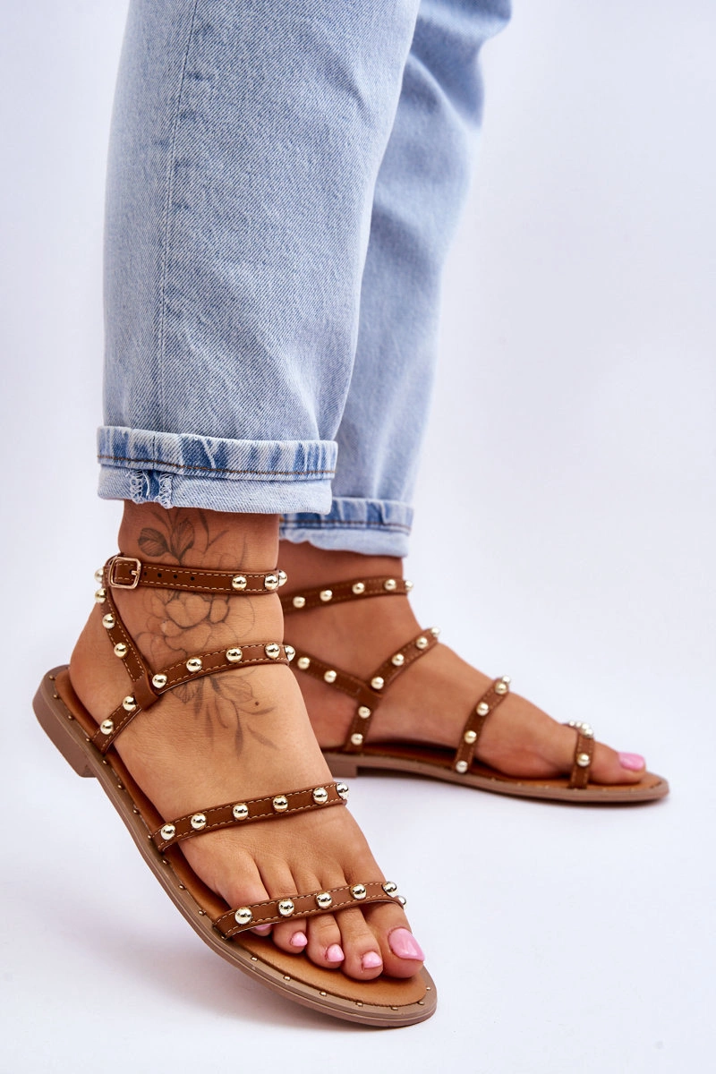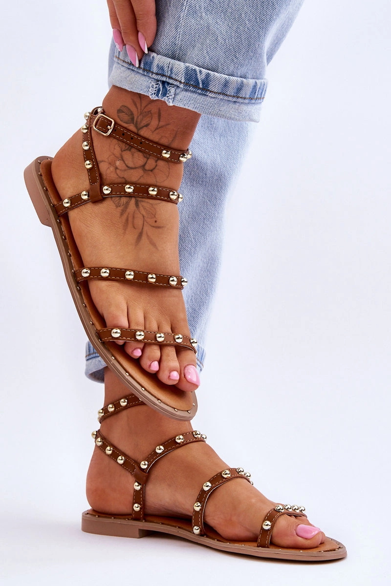 Damskie Sandały Z Ozdobnymi Ćwiekami Brązowe Dorothy