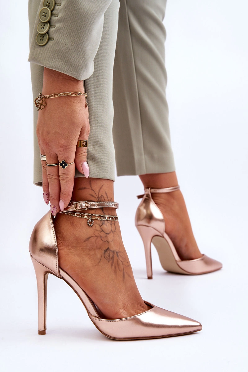 Wysokie Czółenka Szpilki Z Noskiem W Szpic Różowe Złoto Reflection
