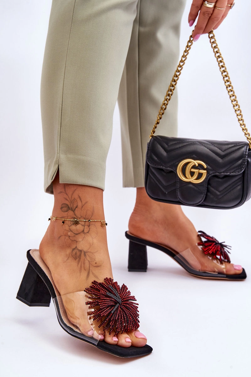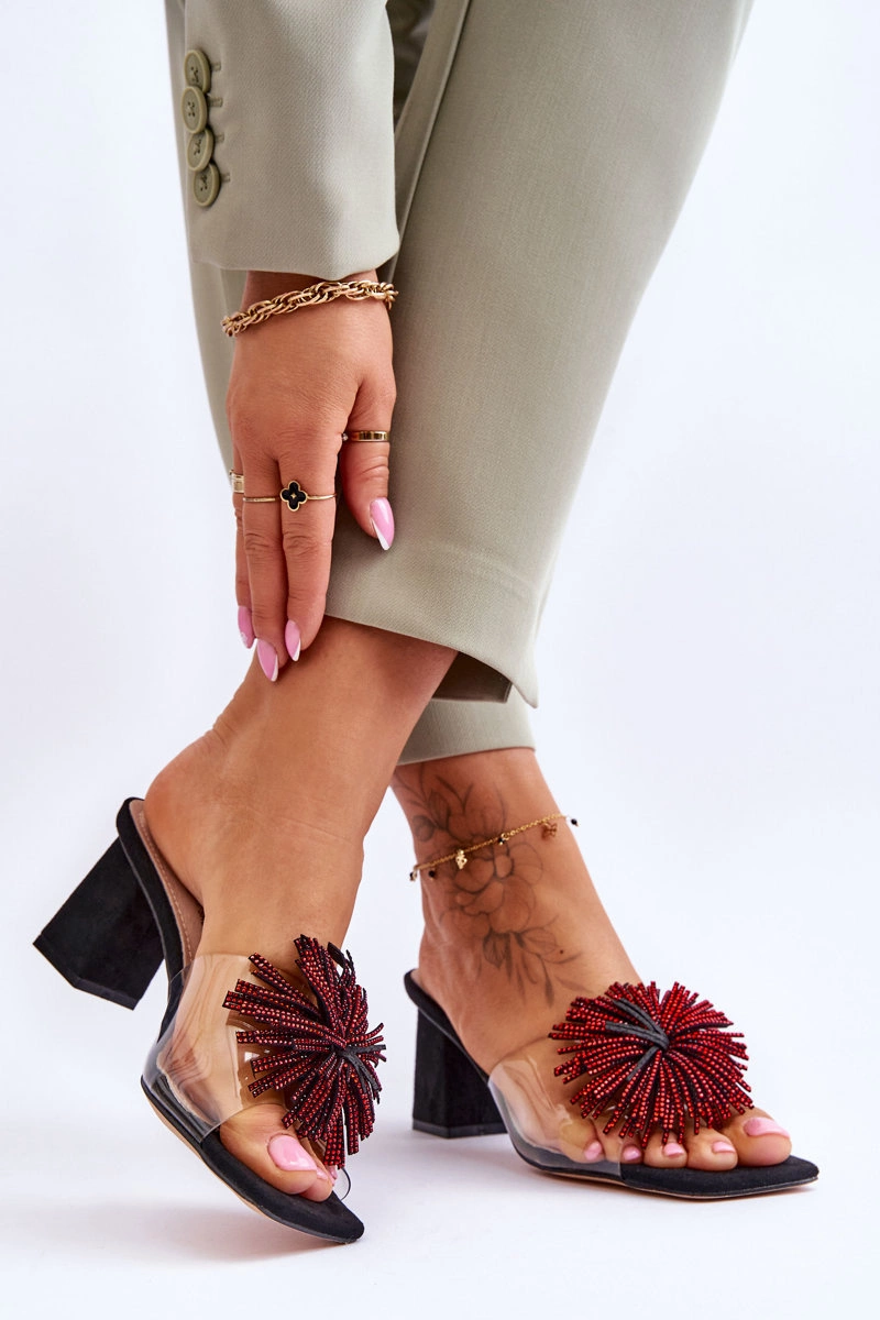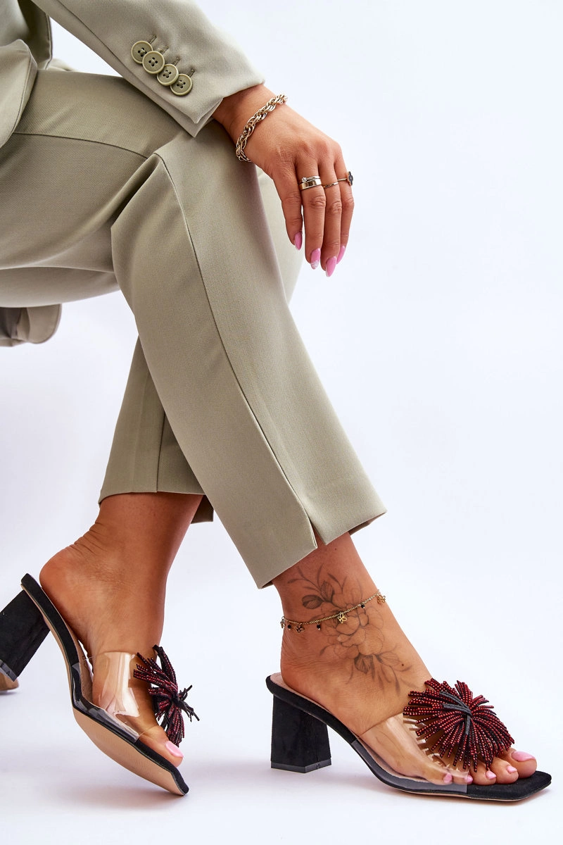 Modne Transparentne Klapki Na Obcasie S.Barski KV-AP658-1 Czarne