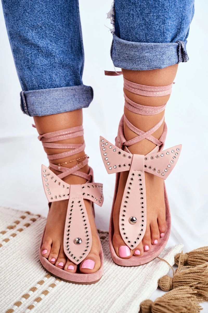 Lu Boo Damskie Wiązane Sandały Japonki Pudrowy Róż Mara