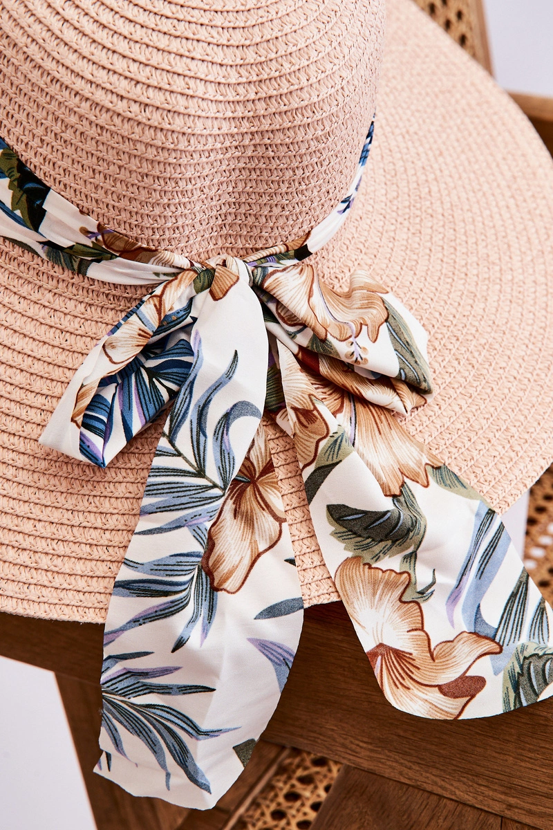 Elegancki, damski kapelusz na słoneczne dni świetnie sprawdzi się podczas wycieczek, urlopu czy spaceru. Został wykonany w 100% z papieru. Model ten posiada na zdobinie materiałowy pasek zawiązany na kokardę. Wewnątrz znajduje się wstążeczka umożliwiająca dopasowanie kapelusza do obwodu głowy.