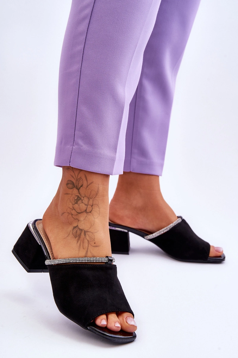 Zamszowe Klapki Na Obcasie S.Barski KV-612-2 Czarne