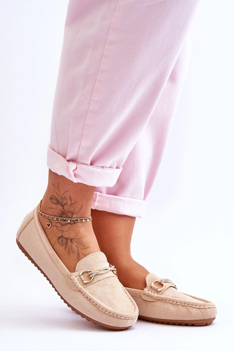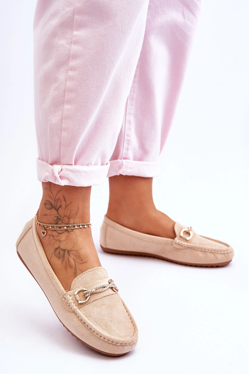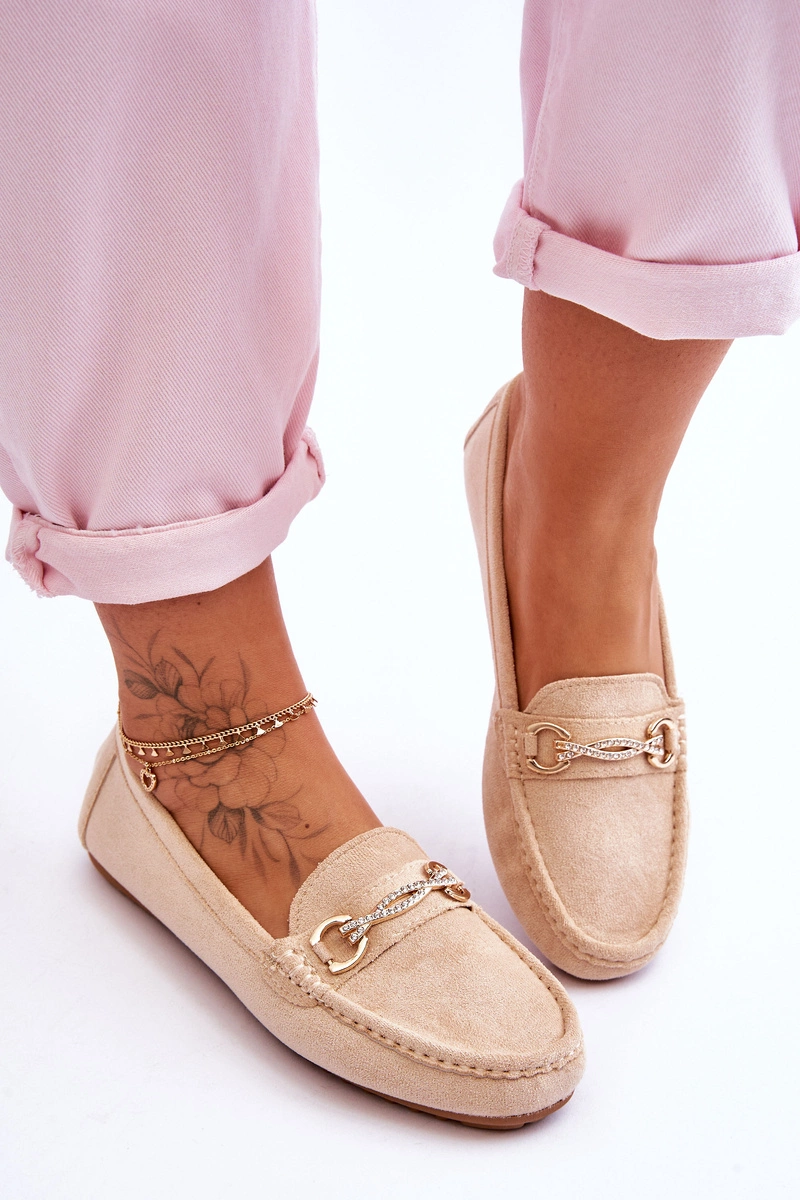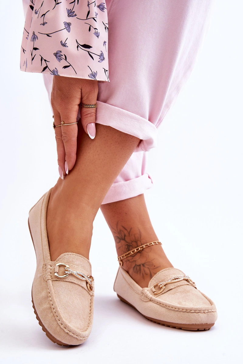 Klasyczne Zamszowe Mokasyny Z Ozdobą Beżowe Amera