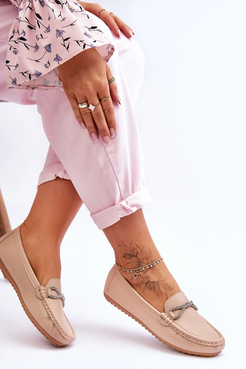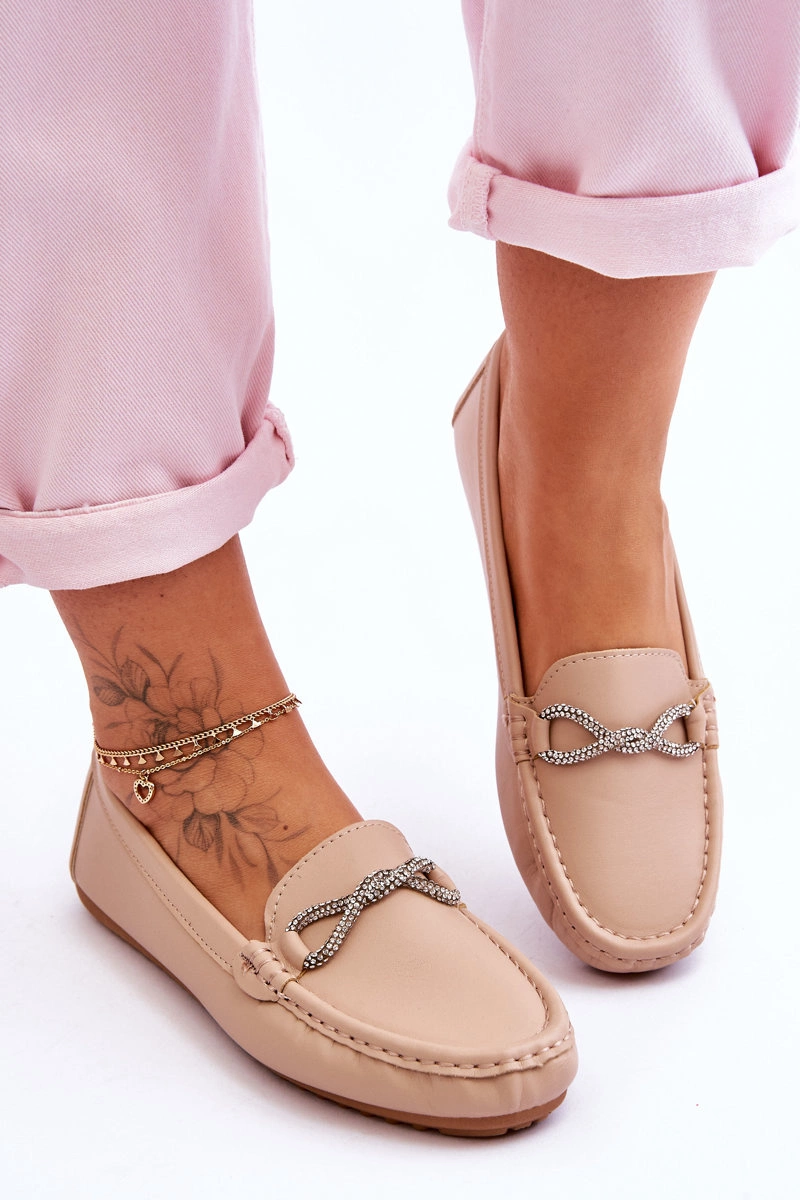 Damskie Wsuwane Mokasyny Z Błyszczącą Ozdobą Beżowe This Moment