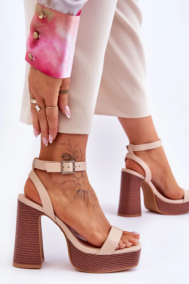 Skórzane Sandały Na Masywnej Platformie Beżowe Marina