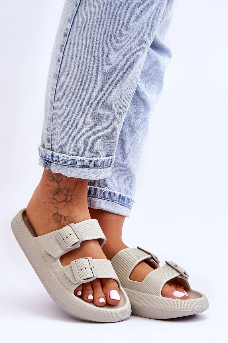 Damskie Piankowe Klapki Z Paskami Jasnoszare Sharmen