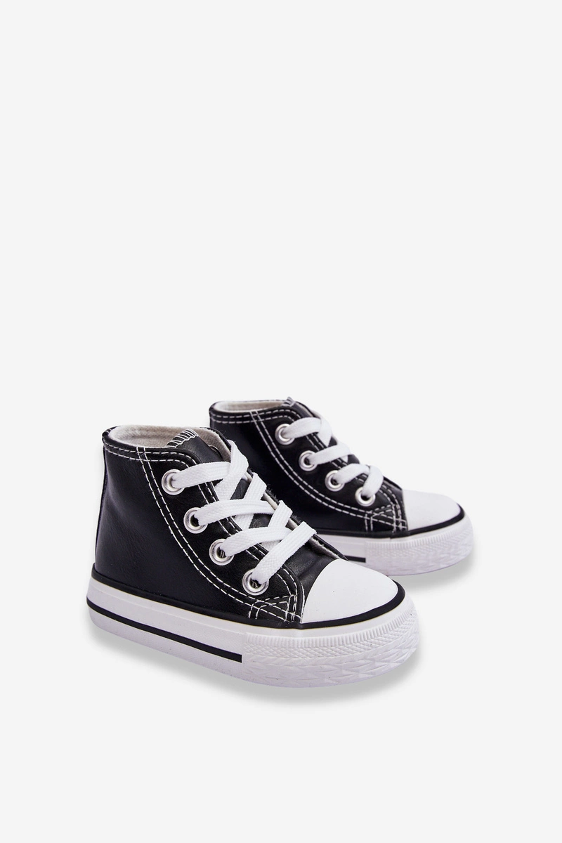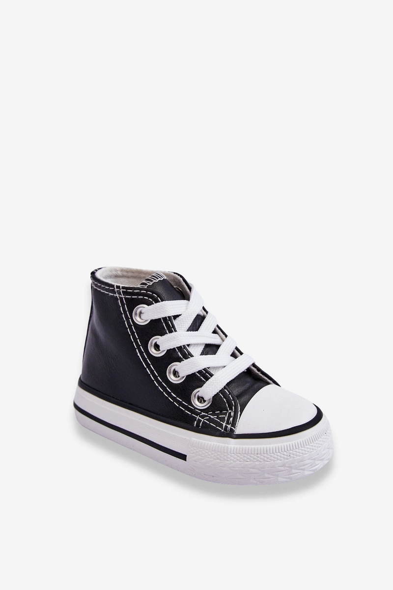 Dziecięce Skórzane Wysokie Trampki Czarno-Białe Marney