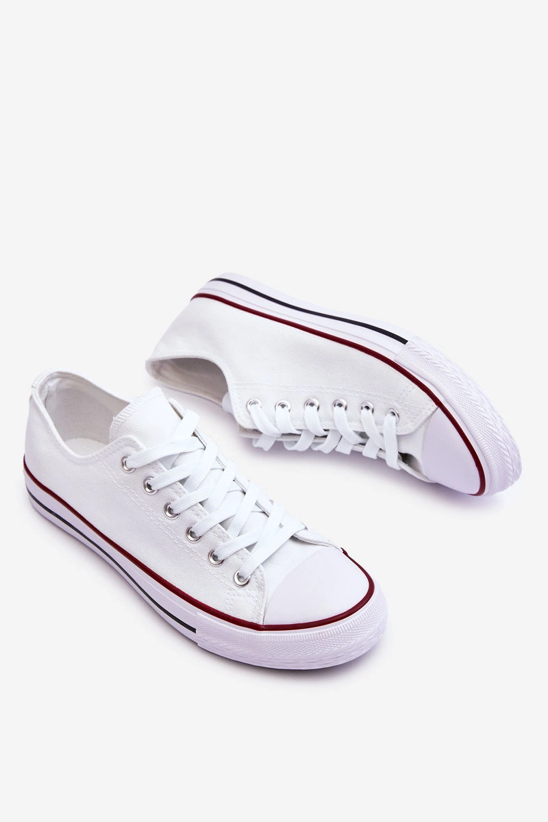 Klasyczne, sznurowane trampki damskie zostały wykonane z materiału tekstylnego. Posiadają gumową podeszwę, która jest dodatkowo antypoślizgowa. Ponadczasowy model, który powinnaś mieć w swojej szafie! Z pewnością założysz je do wielu stylizacji! Nosek został wzmocniony gumowym tworzywem. Wygodna, materiałowa wkładka zapewni komfort podczas użytkowania. Przy wyborze rozmiaru prosimy sugerować się tabelą rozmiarów.
