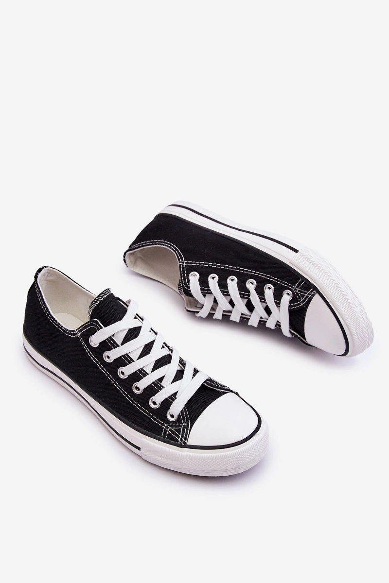 Klasyczne, sznurowane trampki damskie zostały wykonane z materiału tekstylnego. Posiadają gumową podeszwę, która jest dodatkowo antypoślizgowa. Ponadczasowy model, który powinnaś mieć w swojej szafie! Z pewnością założysz je do wielu stylizacji! Nosek został wzmocniony gumowym tworzywem. Wygodna, materiałowa wkładka zapewni komfort podczas użytkowania. Przy wyborze rozmiaru prosimy sugerować się tabelą rozmiarów.