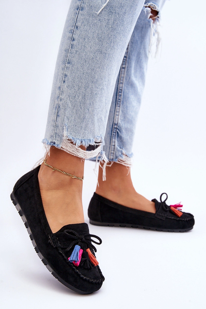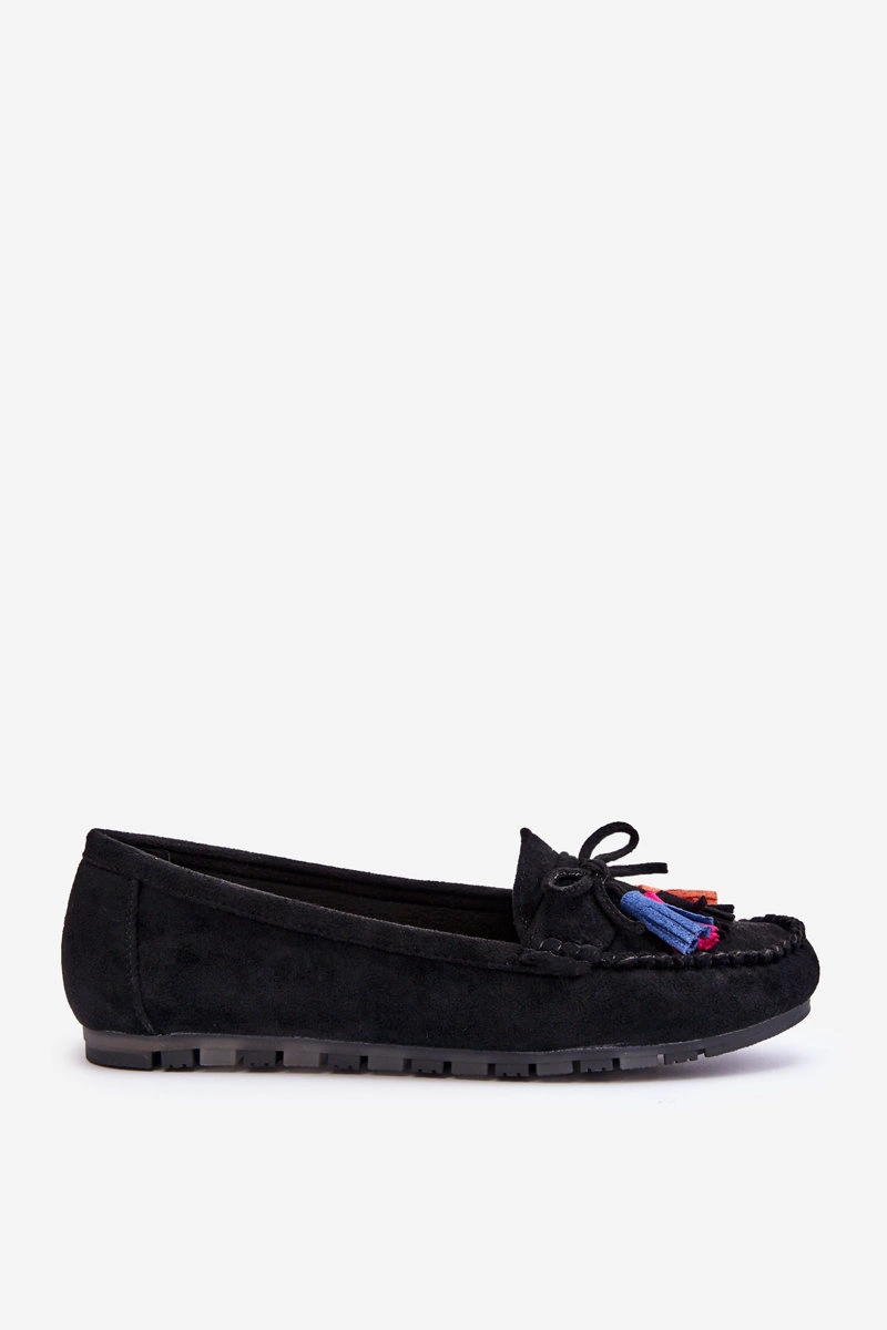 Zamszowe Mokasyny Z Kokardą I Frędzlami Czarne Dorine