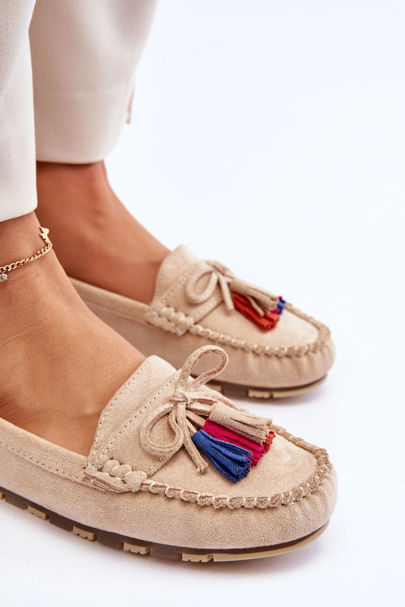 Zamszowe Mokasyny Z Kokardą I Frędzlami Beżowe Dorine