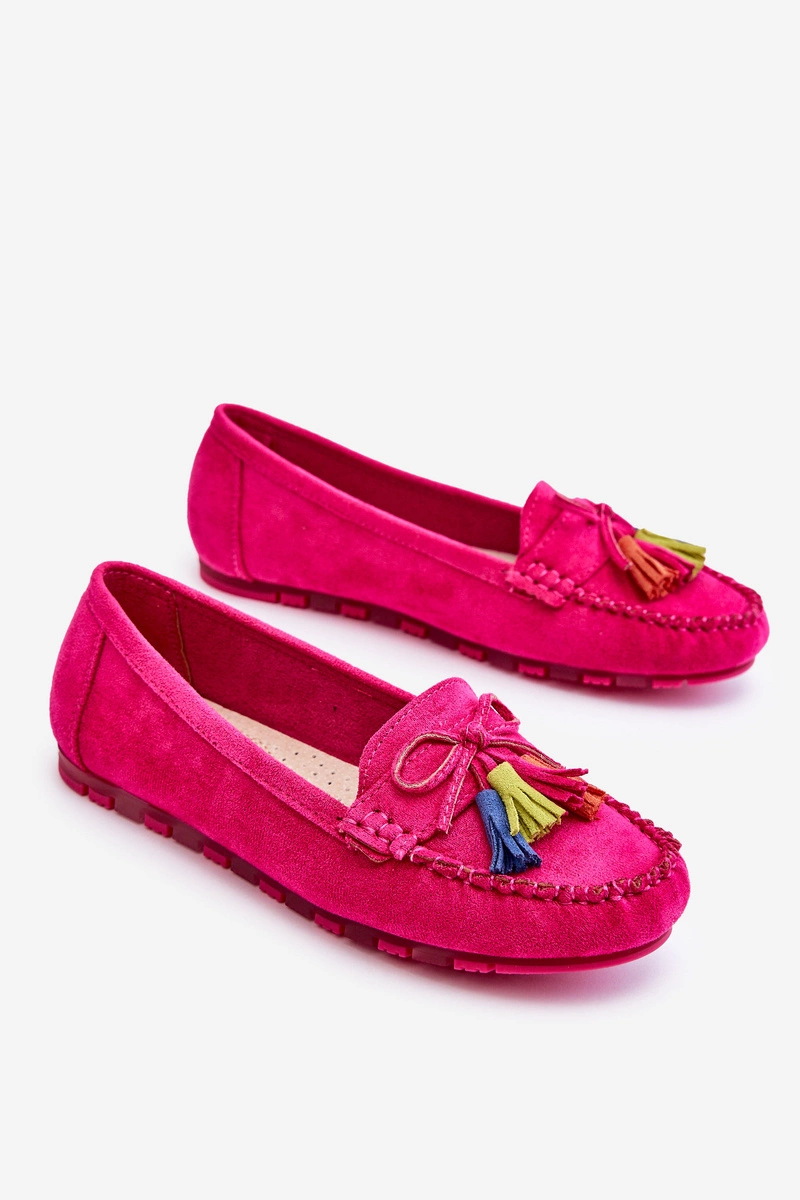 Zamszowe Mokasyny Z Kokardą I Frędzlami Fuksja Dorine