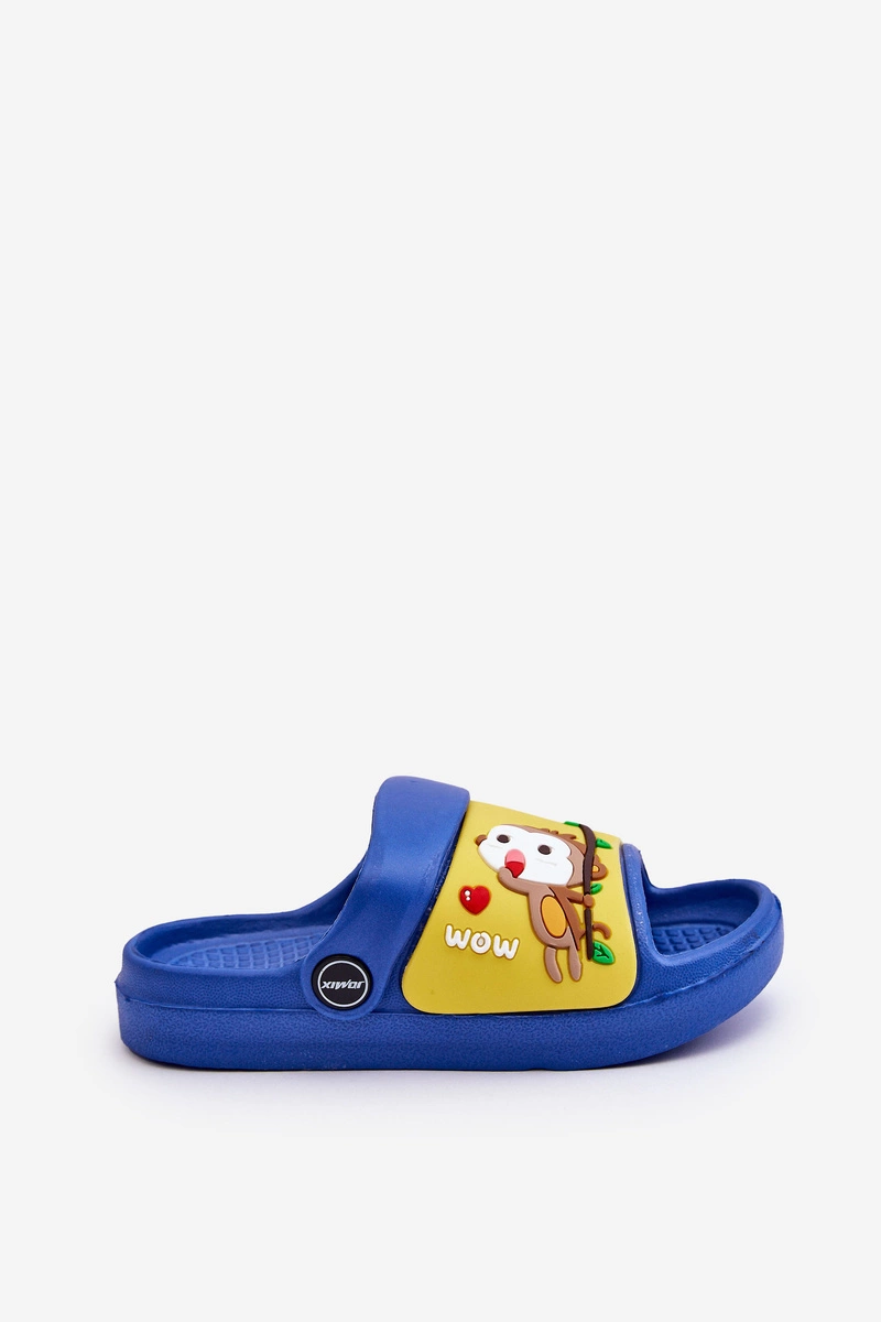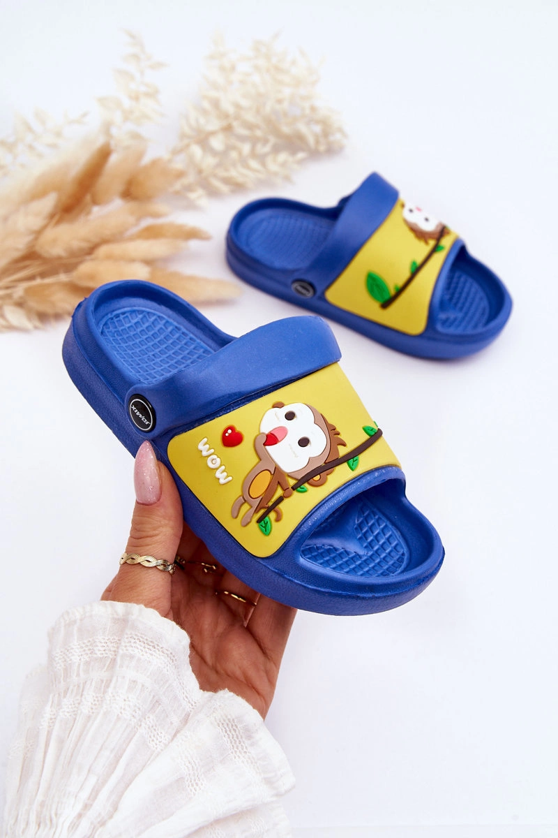 Lekkie Dziecięce Klapki Sandałki Z Motywem Zwierzątka Niebiesko-Żółte Rico