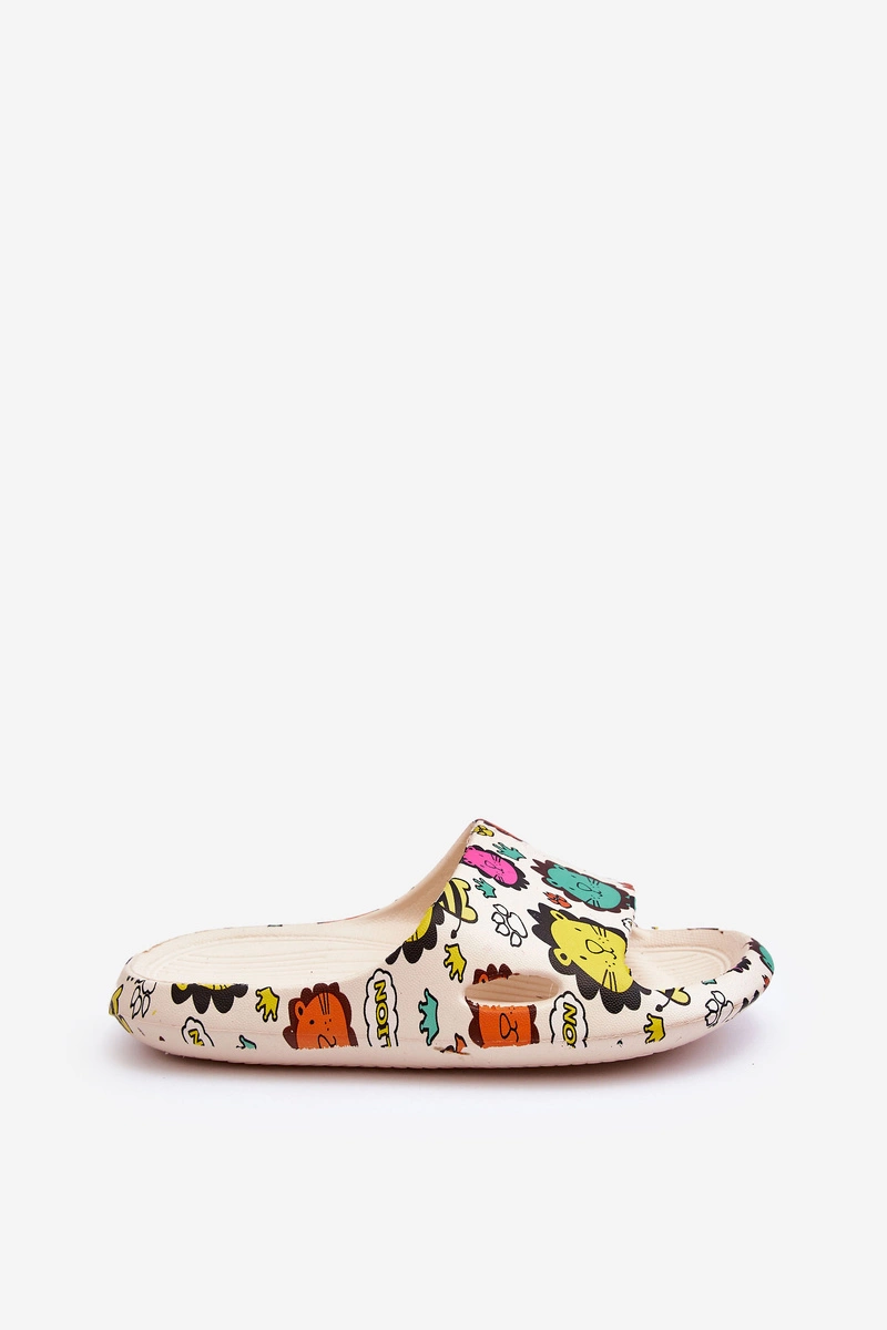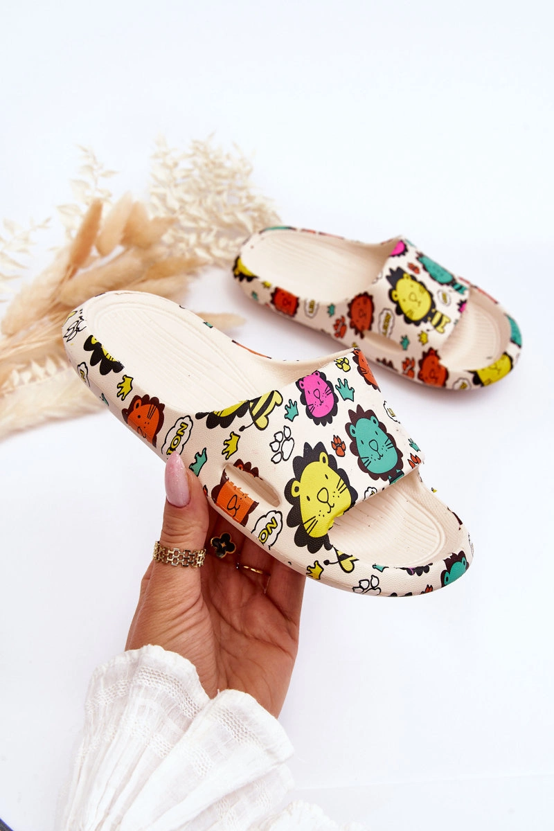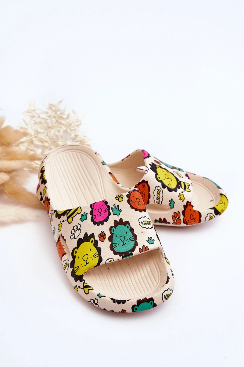 Dziecięce Lekkie Piankowe Klapki Motyw Lwa Beżowe Esther