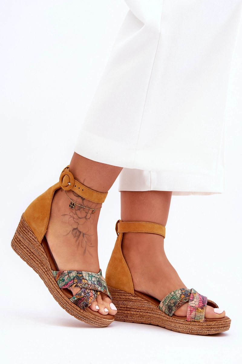 Zamszowe Sandały Na Koturnie Maciejka 04565-43 Pomarańczowe