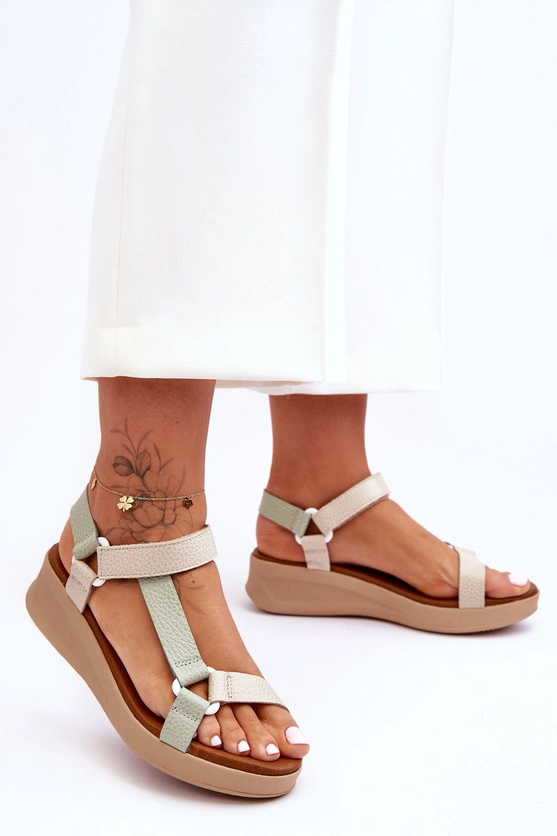 Skórzane Sandały Maciejka L5186-09 Zielono-Beżowe