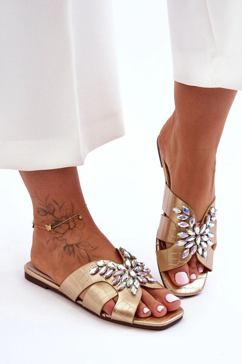 Klapki Z Ozdobnymi Kamieniami S.Barski 617-22 Złote