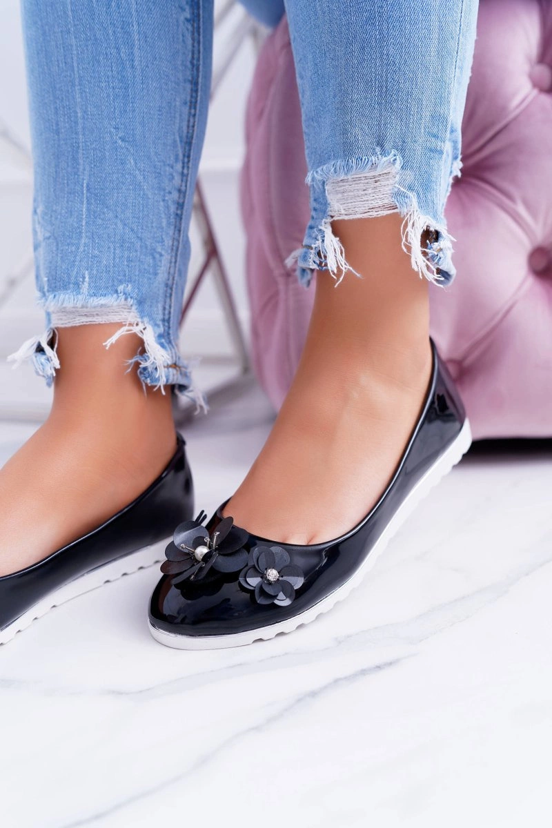 Vices | Lakierowane Czarne Damskie Balerinki Z Kwiatkiem Neli
