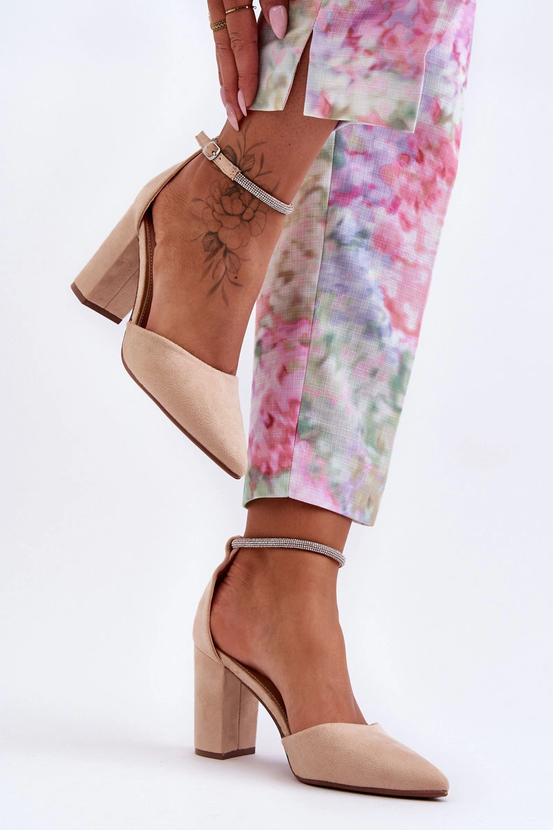 Zamszowe Czółenka Z Cyrkoniami Beżowe Diamond