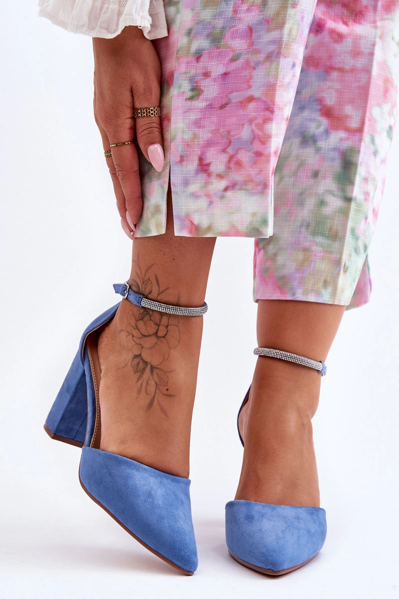 Zamszowe Czółenka Z Cyrkoniami Niebieskie Diamond