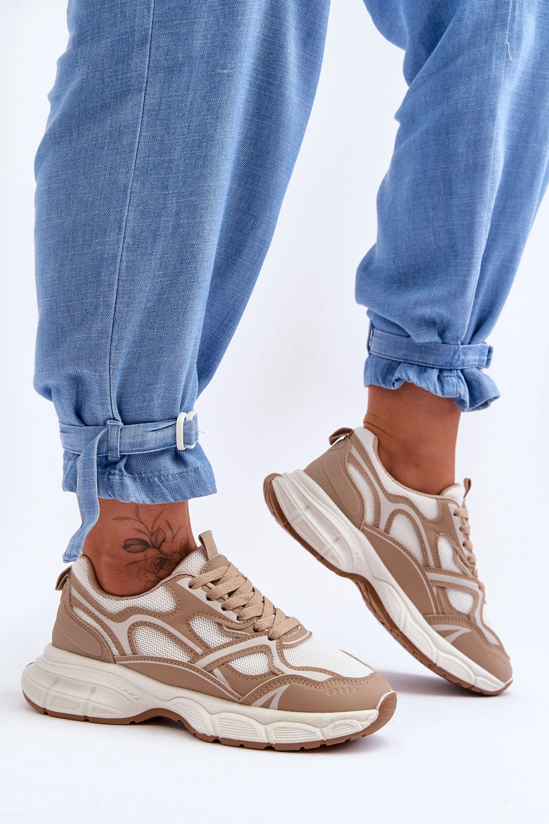 Damskie buty sportowe zostały wykonane z eko skóry oraz materiału tekstylnego. Osadzono je na platformie i płaskim obcasie z antypoślizgową podeszwą. Buty te są klasycznie sznurowane, co pozwoli na odpowiednie dopasowanie obuwia do tęgości nogi. Ten model świetnie sprawdzi się w stylizacjach z dresami czy prążkowanymi sukienkami. Przy wyborze rozmiaru prosimy kierować się tabelą rozmiarów.