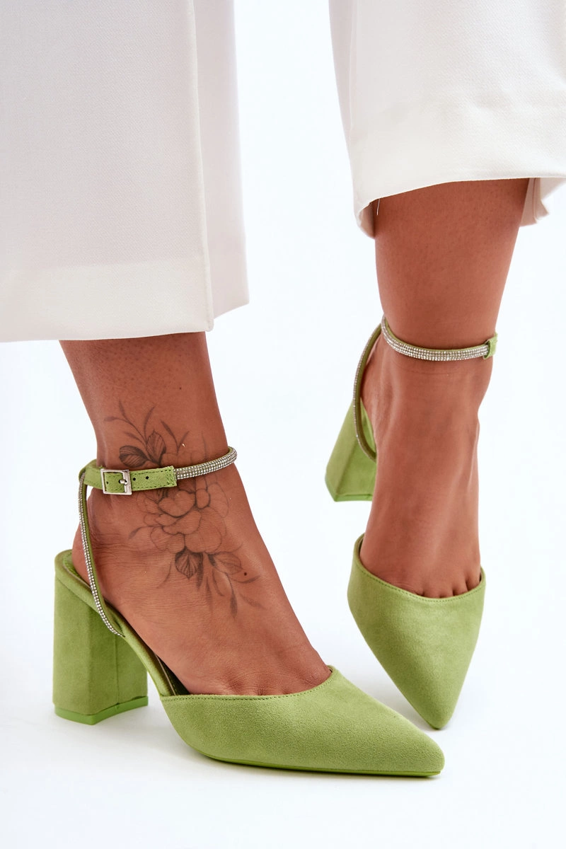 Zamszowe Czółenka Z Ozdobnym Paseczkiem Zielone Lirosa