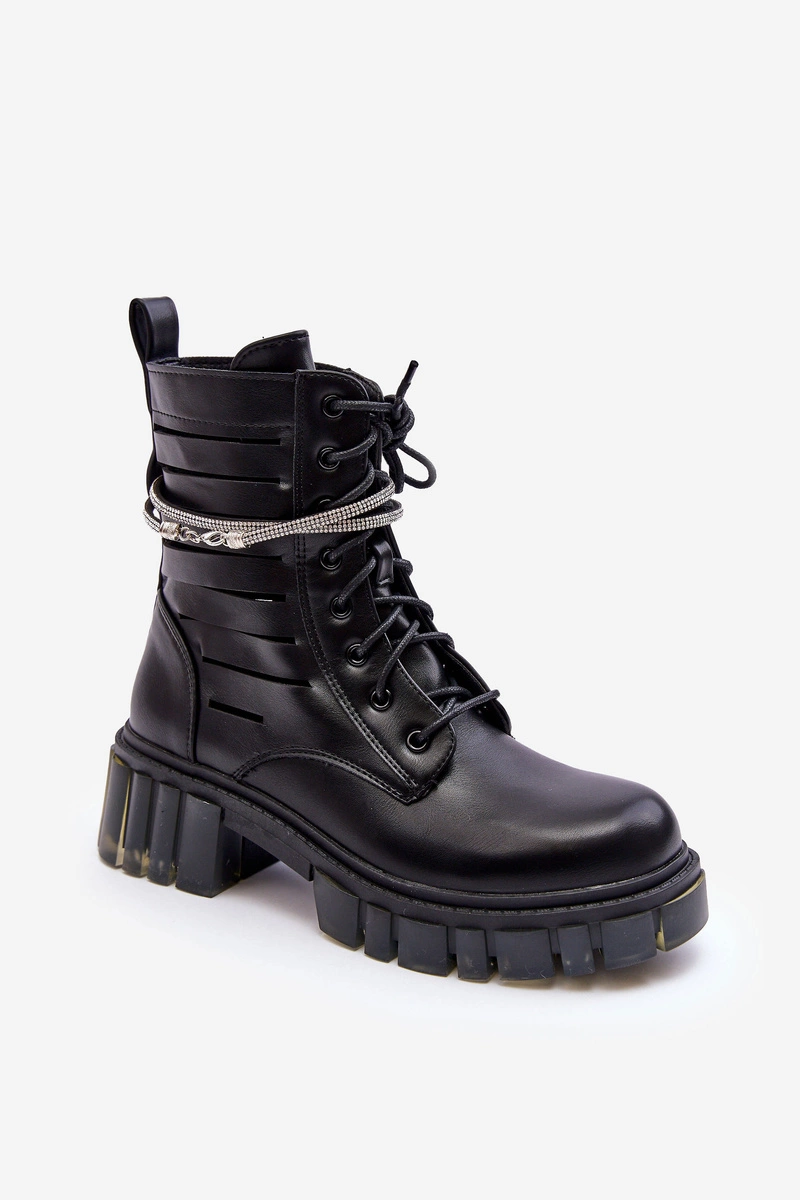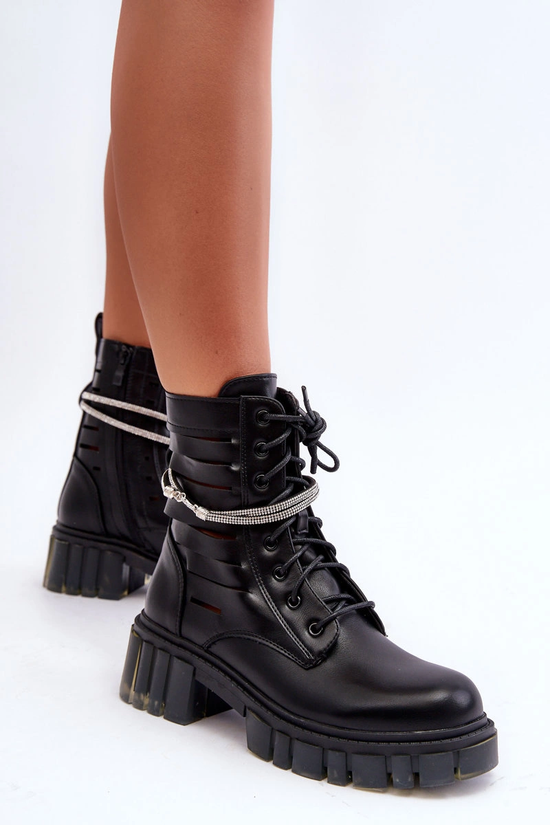 Modne Botki Workery Z Ozdobnym Paseczkiem Czarne Rocky
