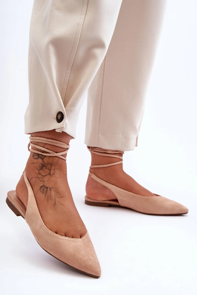 Damskie Zamszowe Wiązane Baleriny Nude Lilly Ann