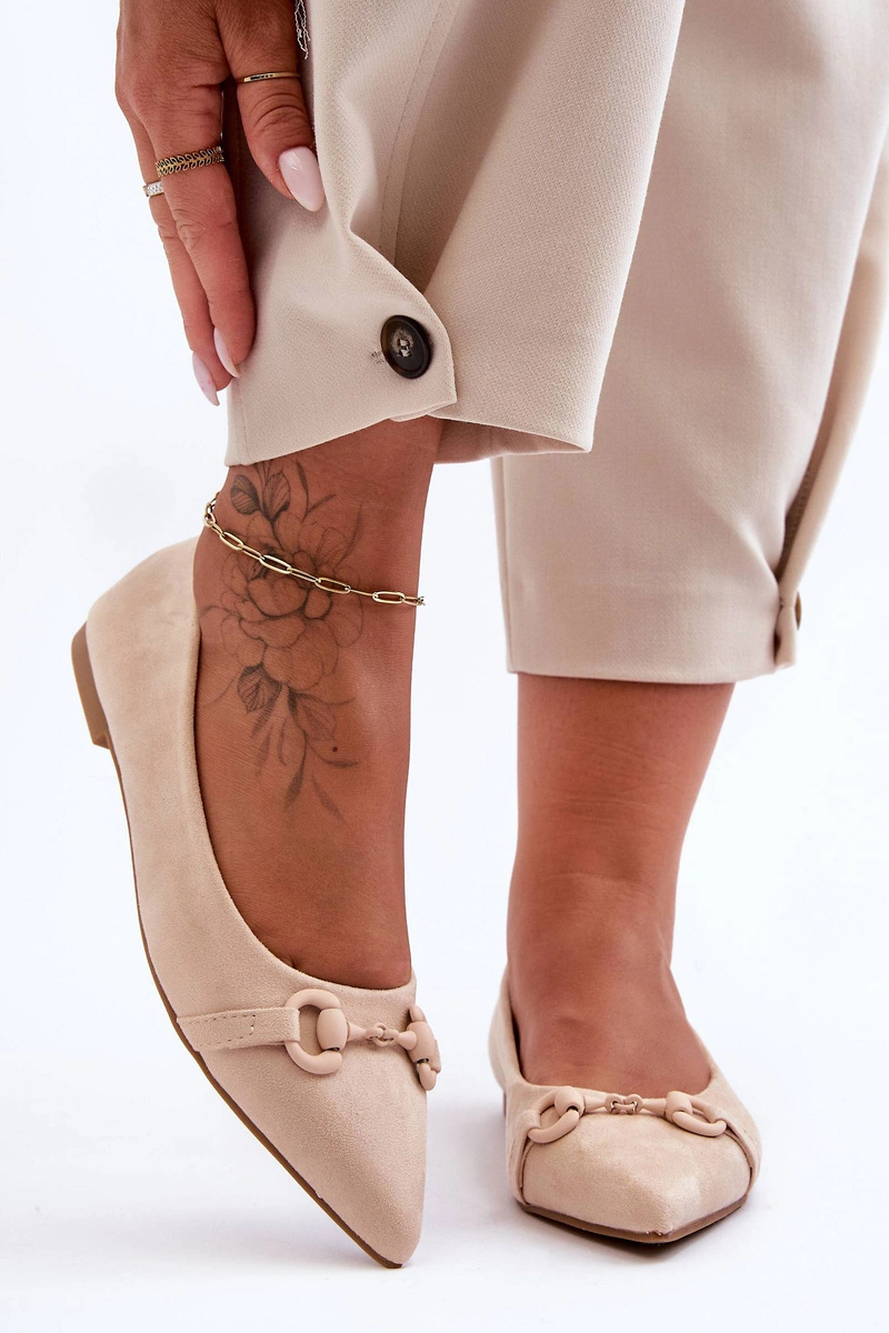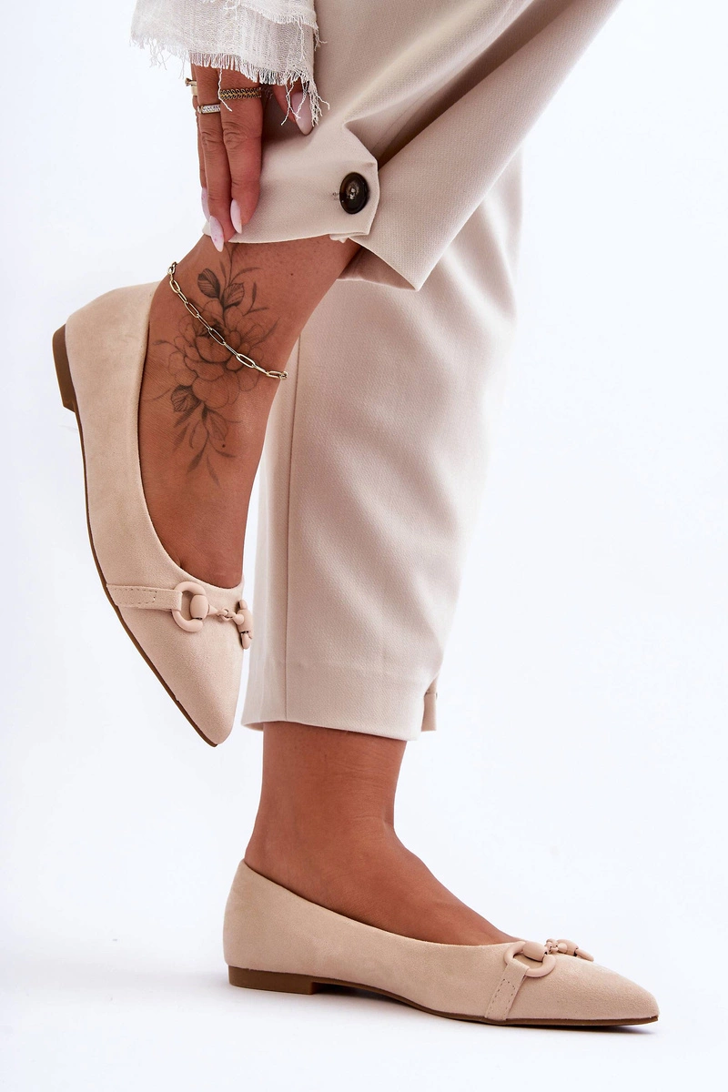Zamszowe Baleriny Z Ozdobą Beżowe Noldaia