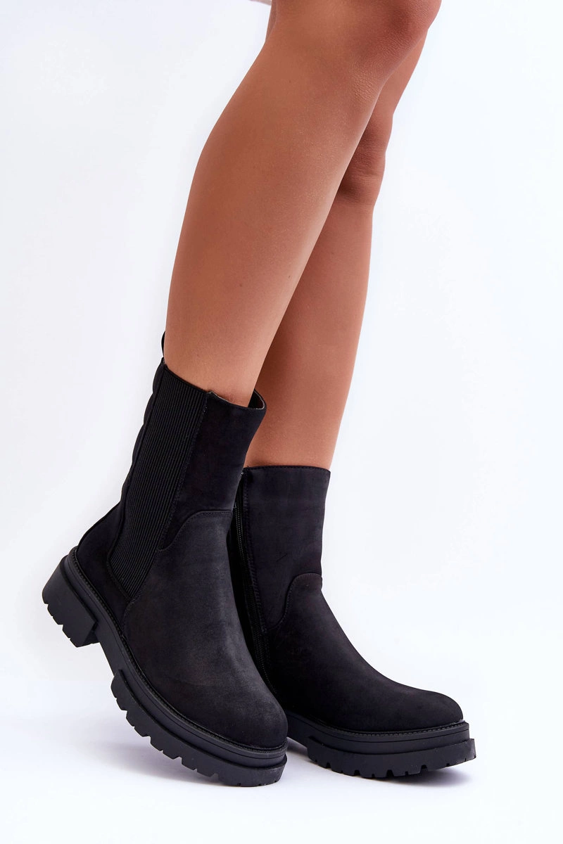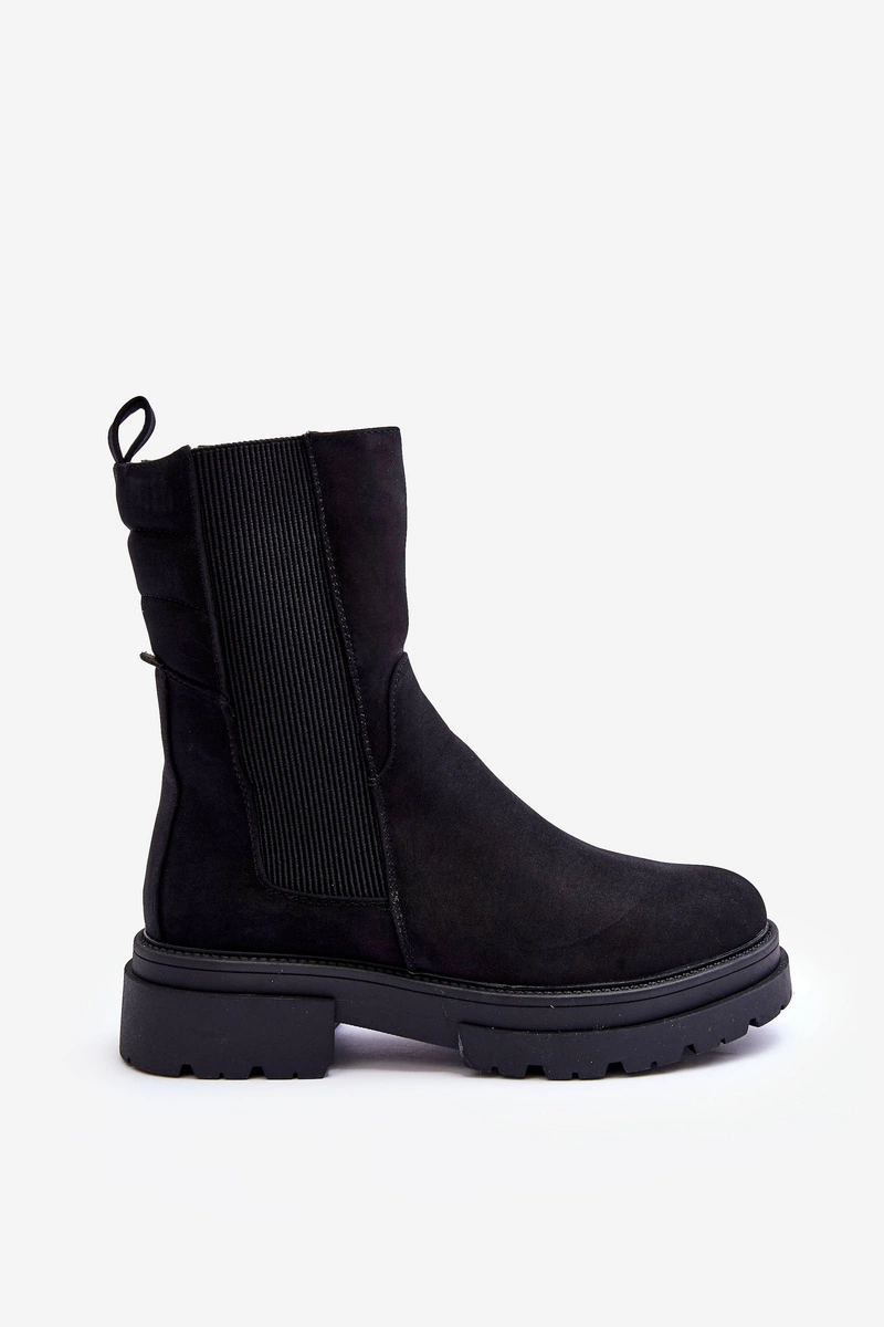 Wysokie Ocieplane Botki Sztyblety Wsuwane Nubuk Czarne Milca