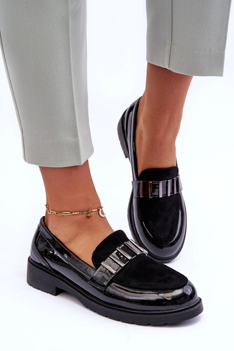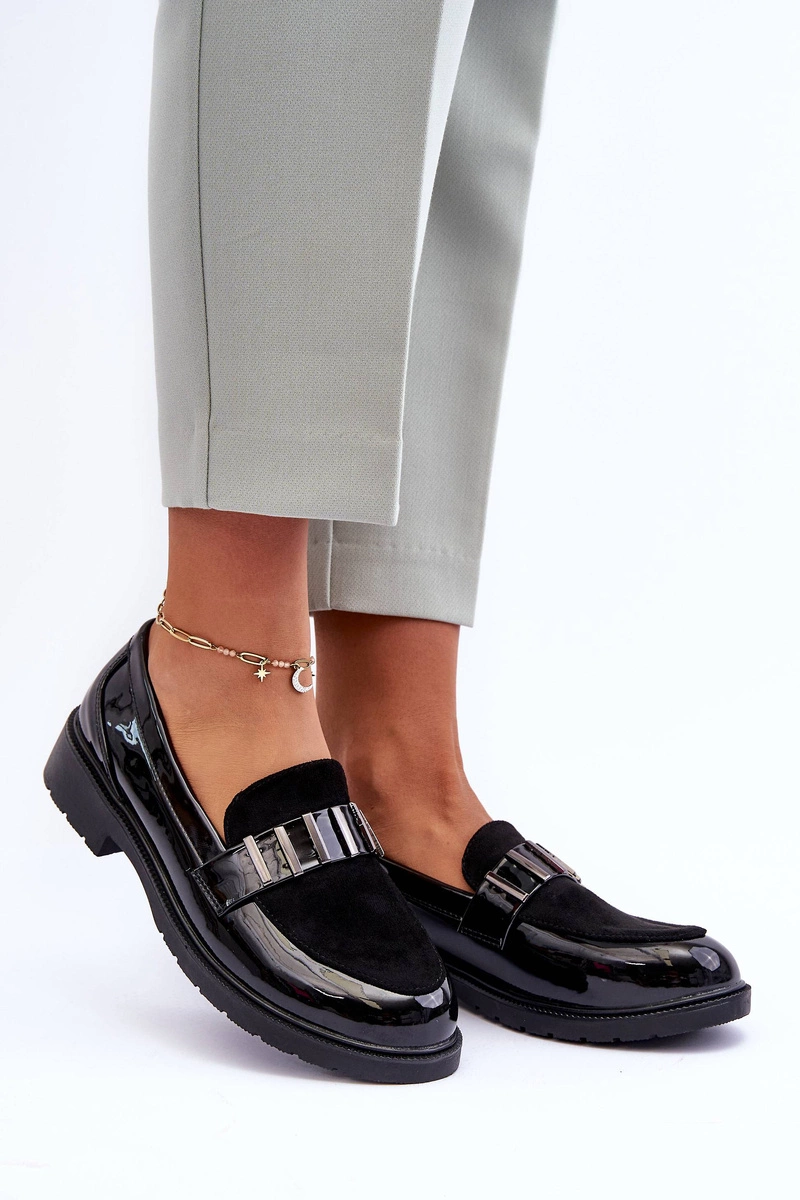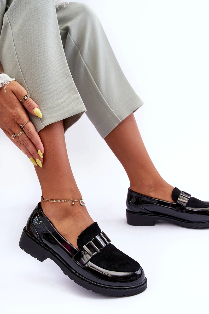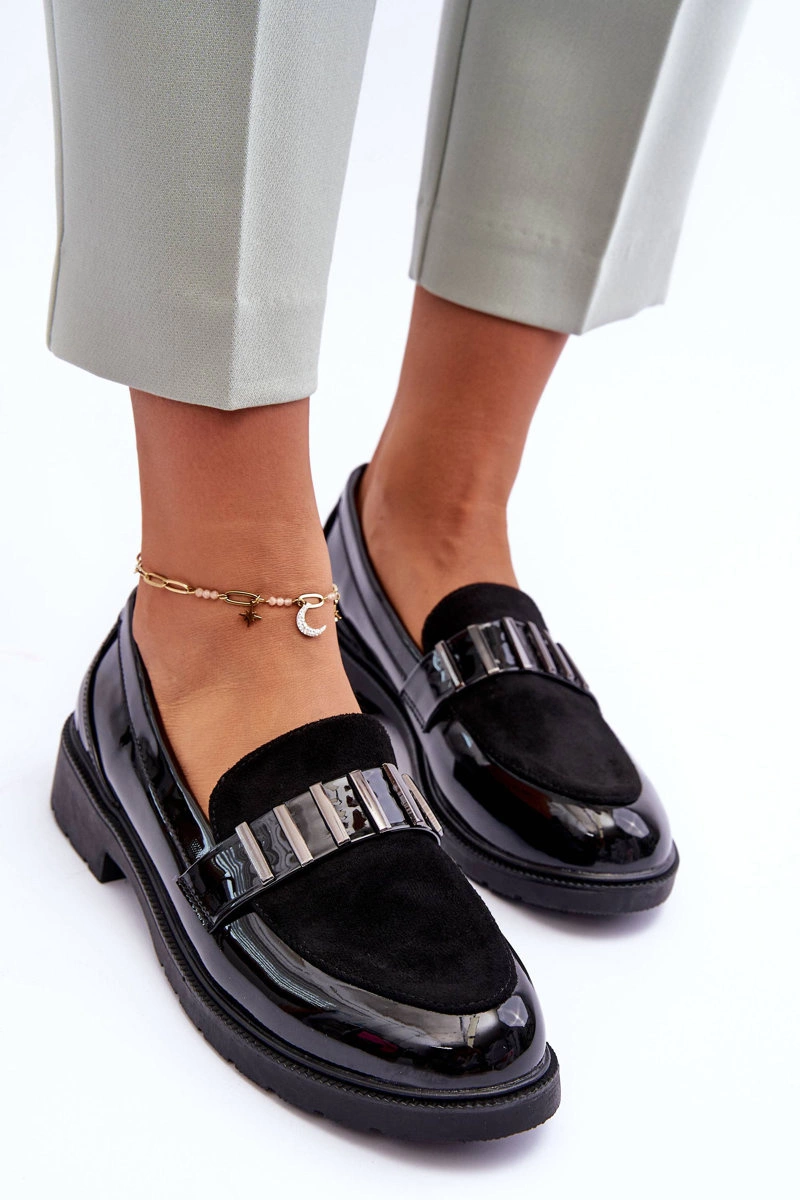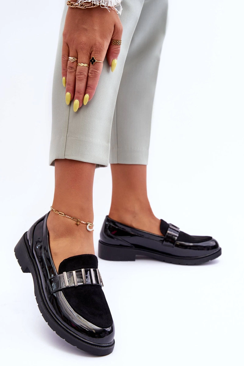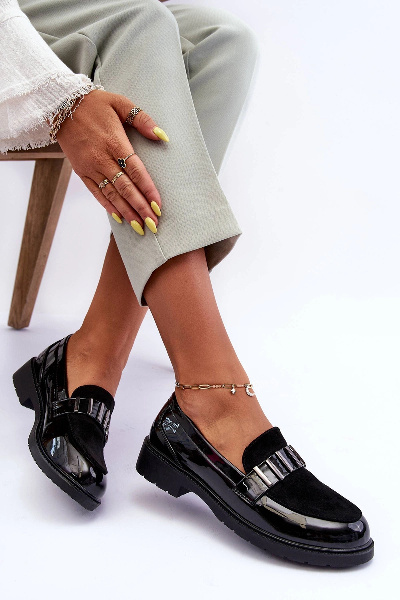 Lakierowane Półbuty Mokasyny Z Ozdobą Czarne S.Barski HY317