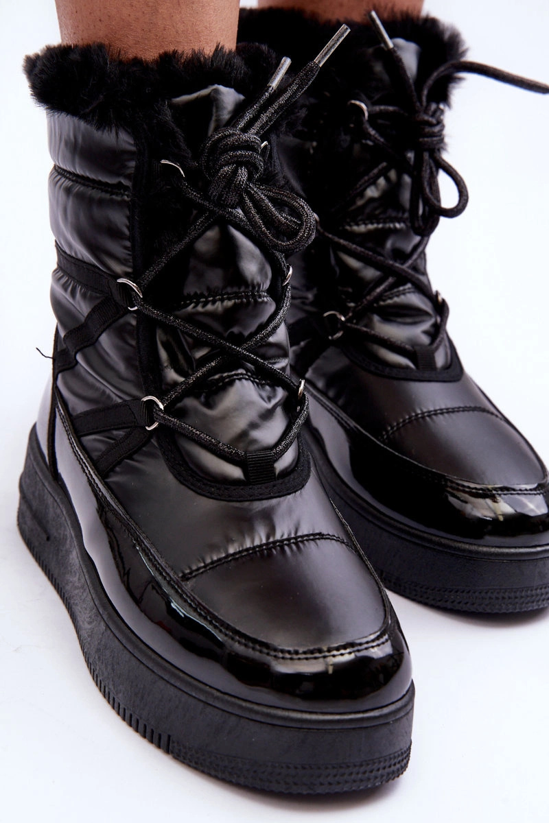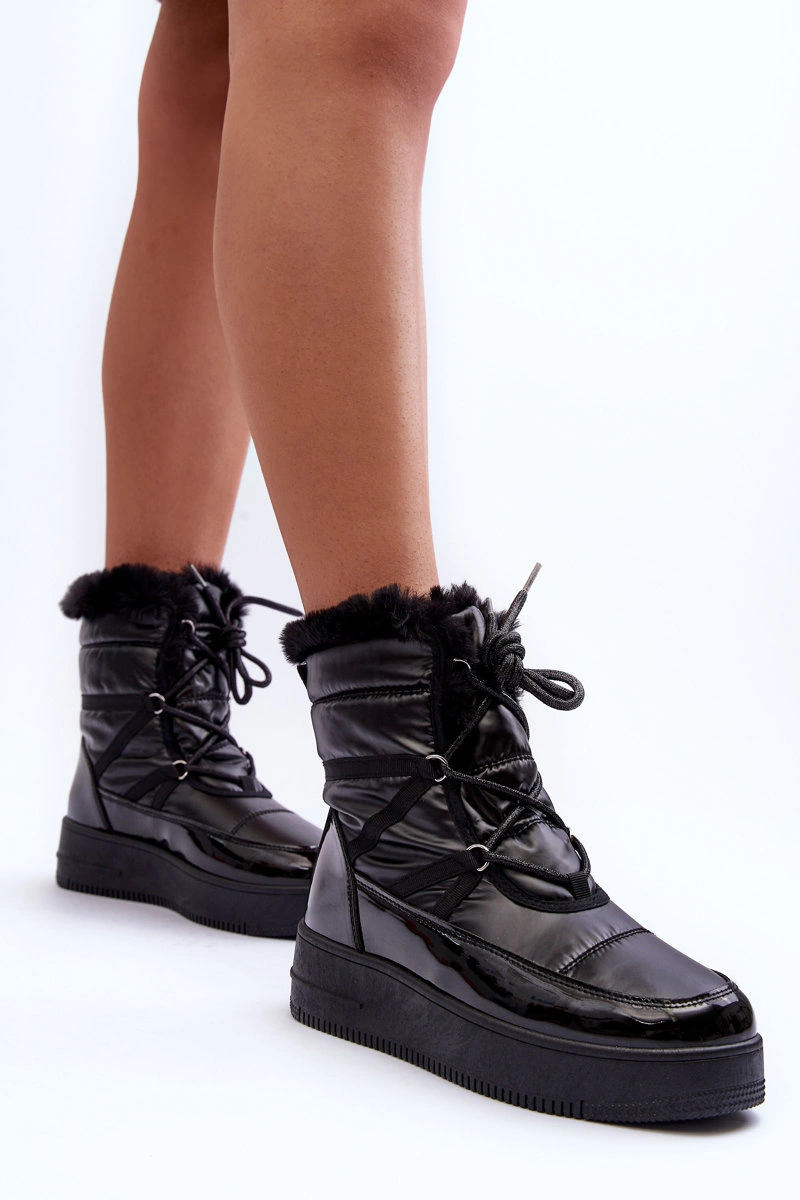 Śniegowce Sznurowane Damskie Z Futerkiem Czarne Lexxina